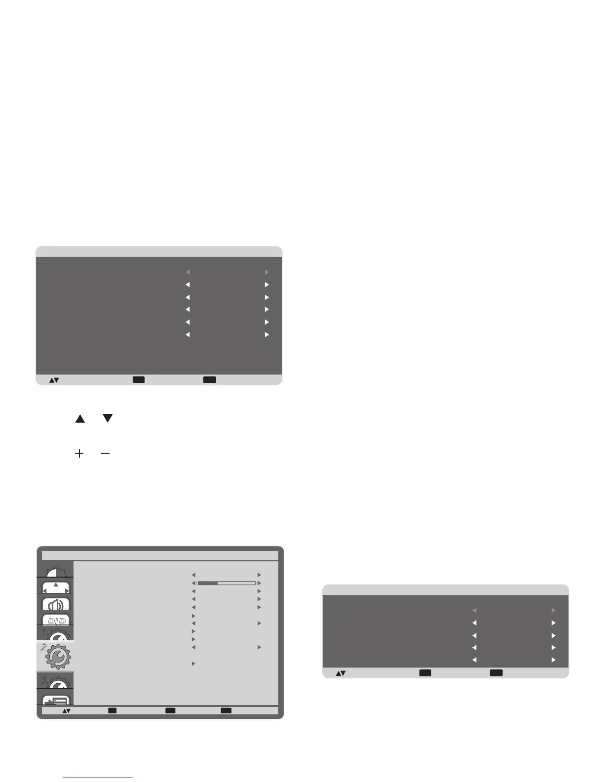 3. Press [ ] or [ ] button to adjust all settings except