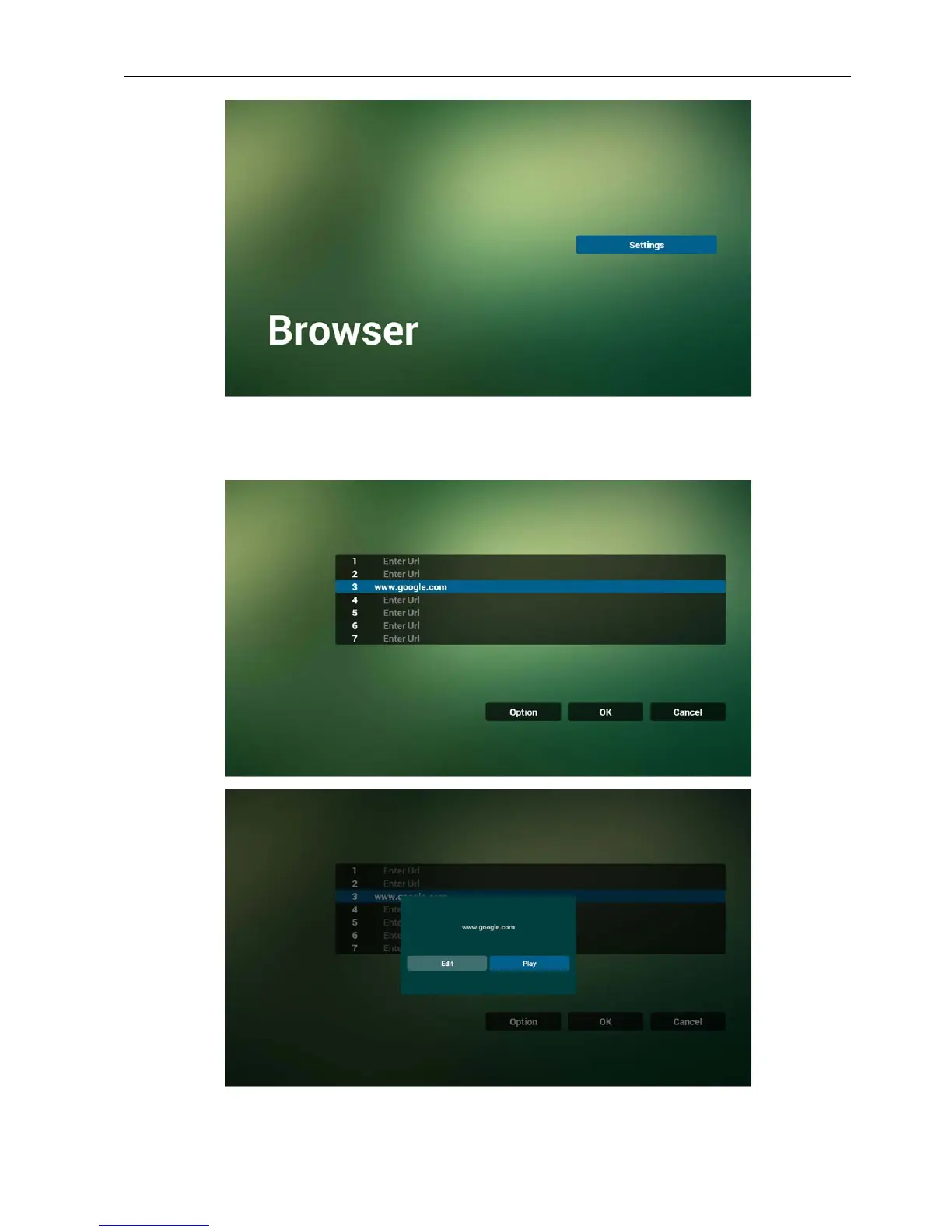 URL. If press “Edit”, it will show edit URL dialog, if press “Play”, it will show web page