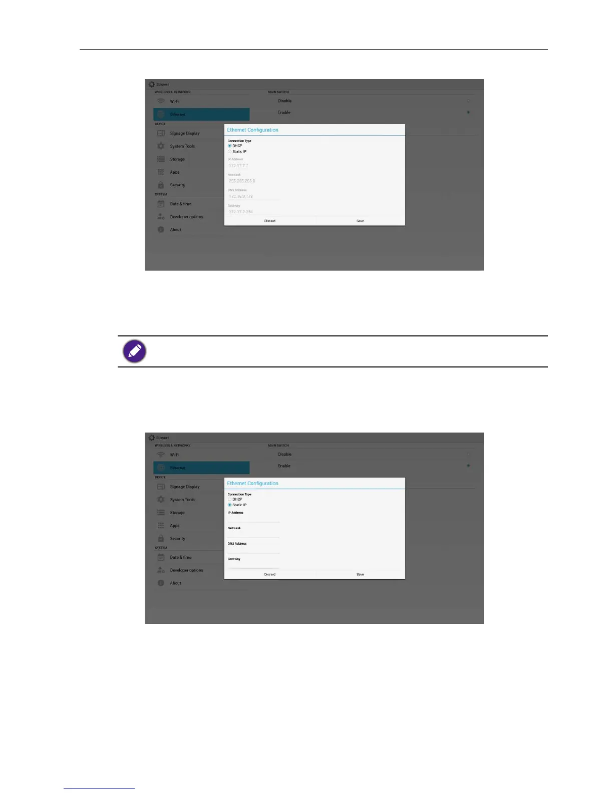 Under Static IP. User can manually input IP Address, Netmask, DNS Address and