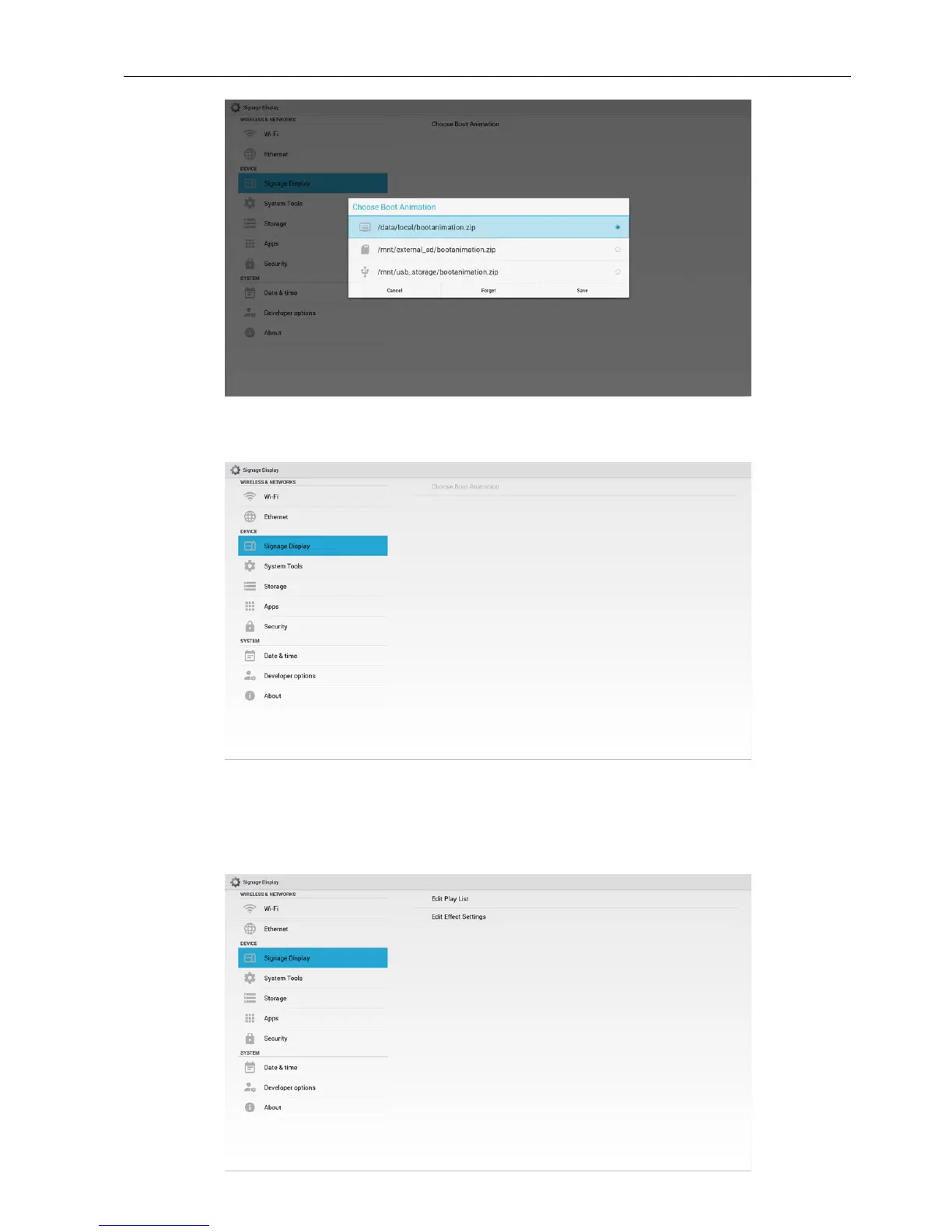 3) If OSD menu Logo item is On or Off, the users cannot choose boot animation in