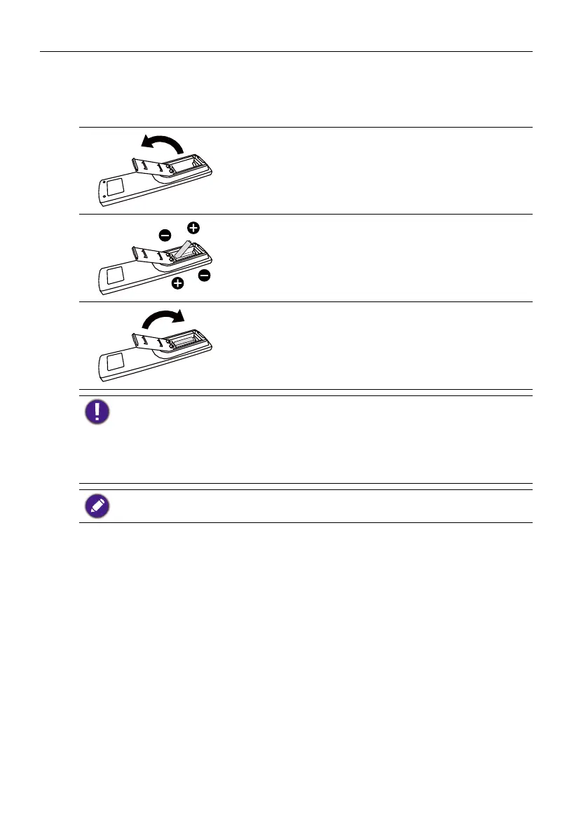 If you do not intend to use the remote control for a long period, remove the batteries.