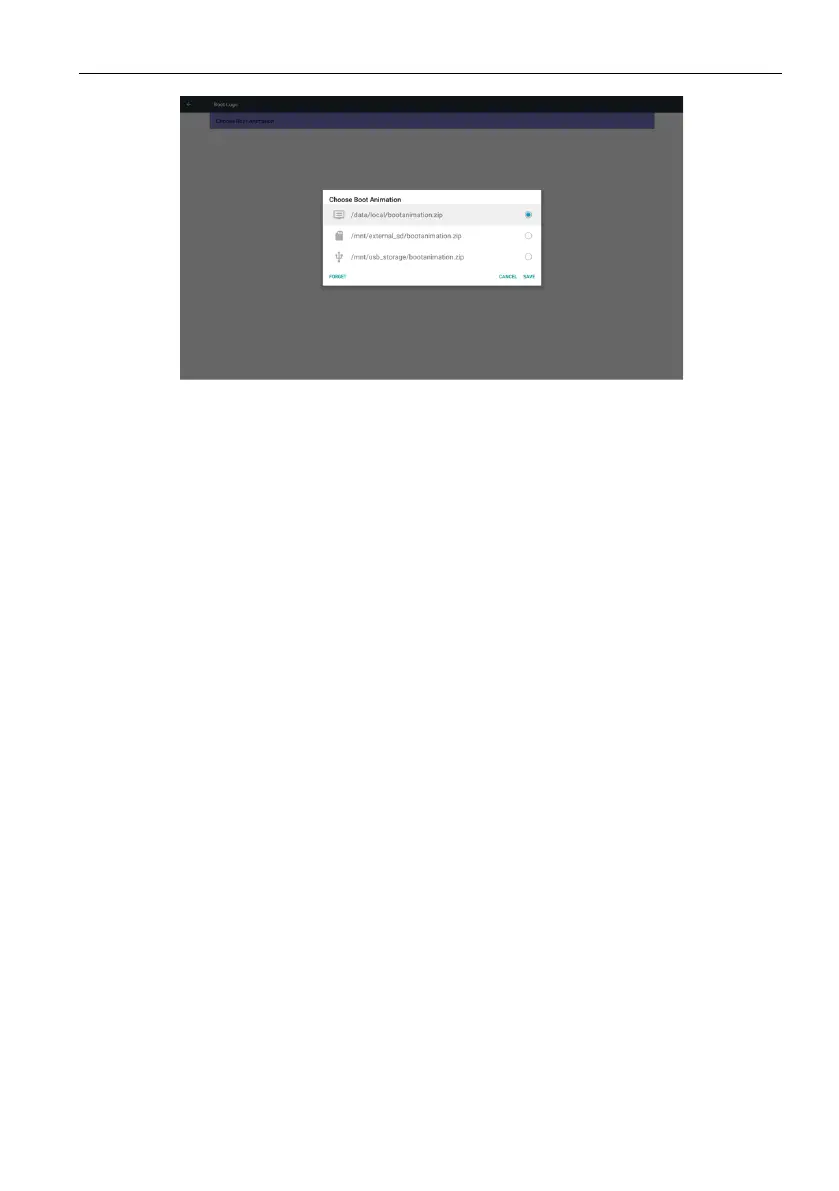 Press Save key to save SD card or USB bootanimation.zip to /data/local and set it as