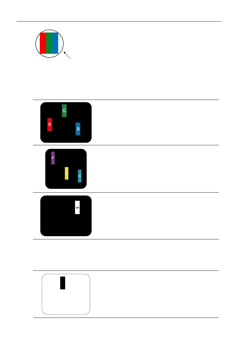 One lit red, green or blue sub pixel
