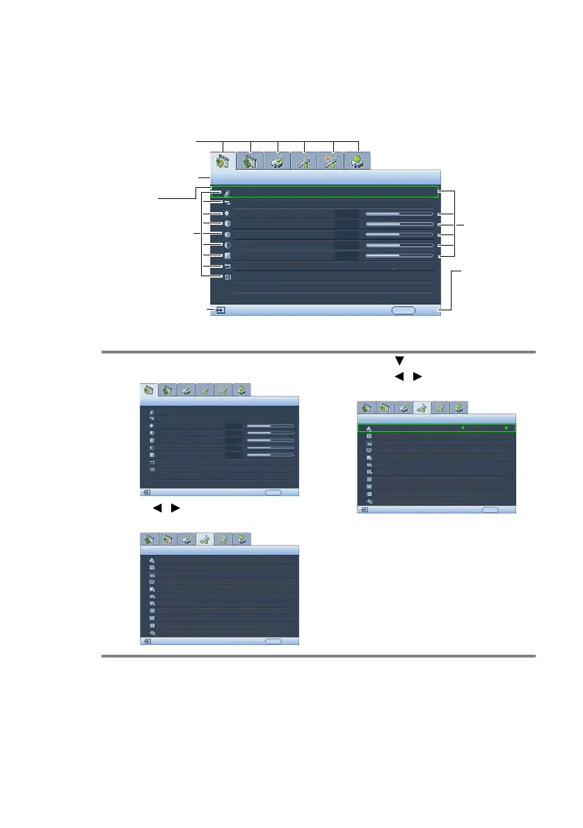 The projector is equipped with multilingual On-Screen Display (OSD) menus for making