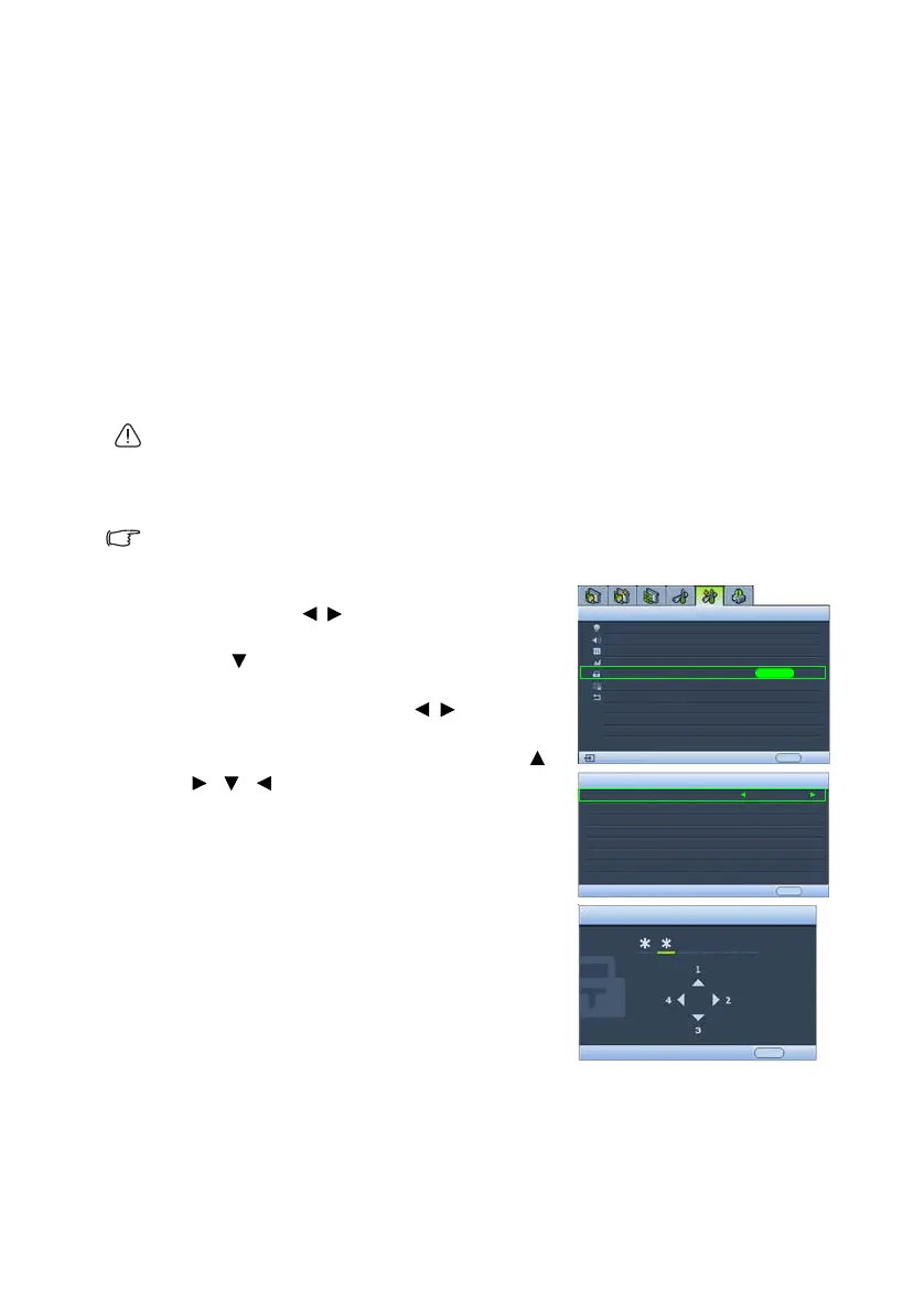 Once a password has been set and activated, the projector cannot be used unless the correct