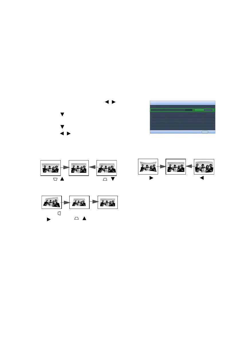 3. Press to highlight Pincushion Correction and