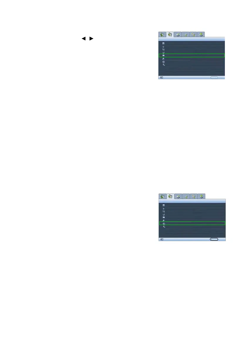 setting by pressing / on the projector or remote