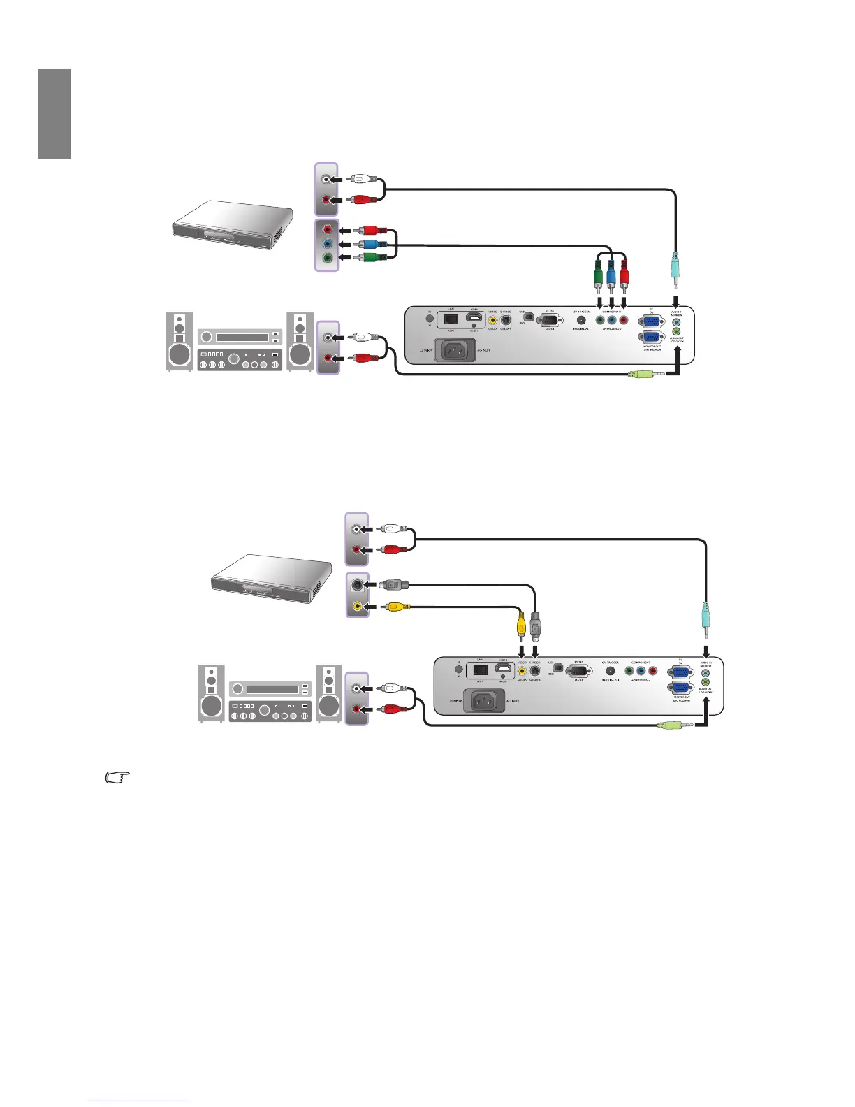 Be sure to match the corresponding colors between the cables and the terminals. The RCA type component