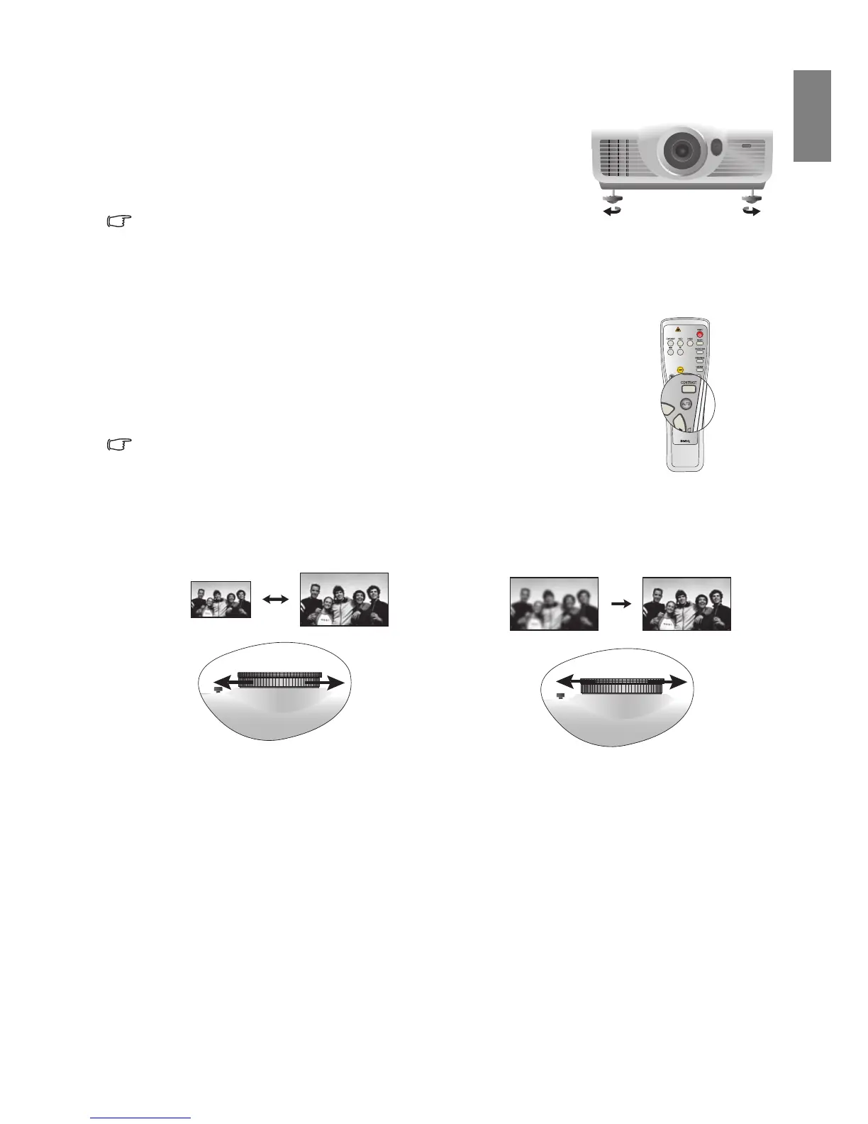 used if necessary to change the projection angle. Screw the feet in or out as