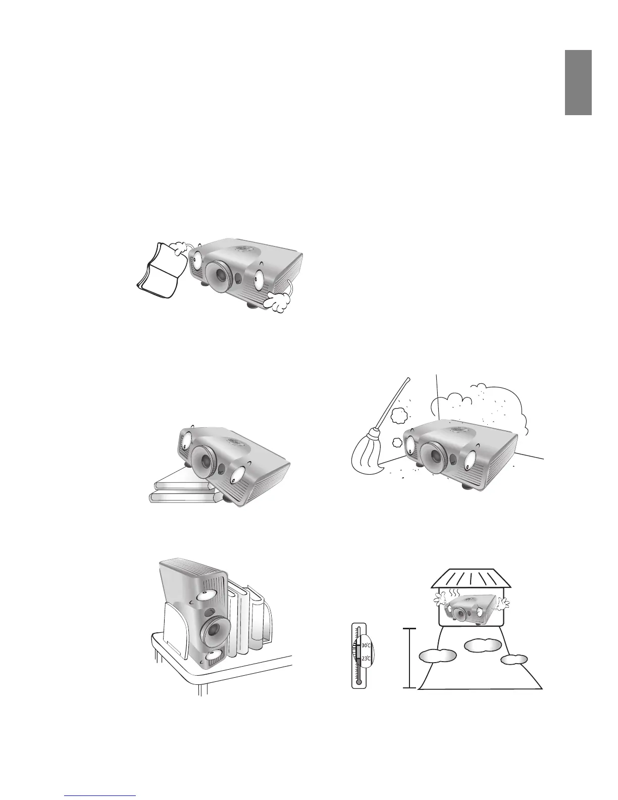 4. Do not place the projector in any of the