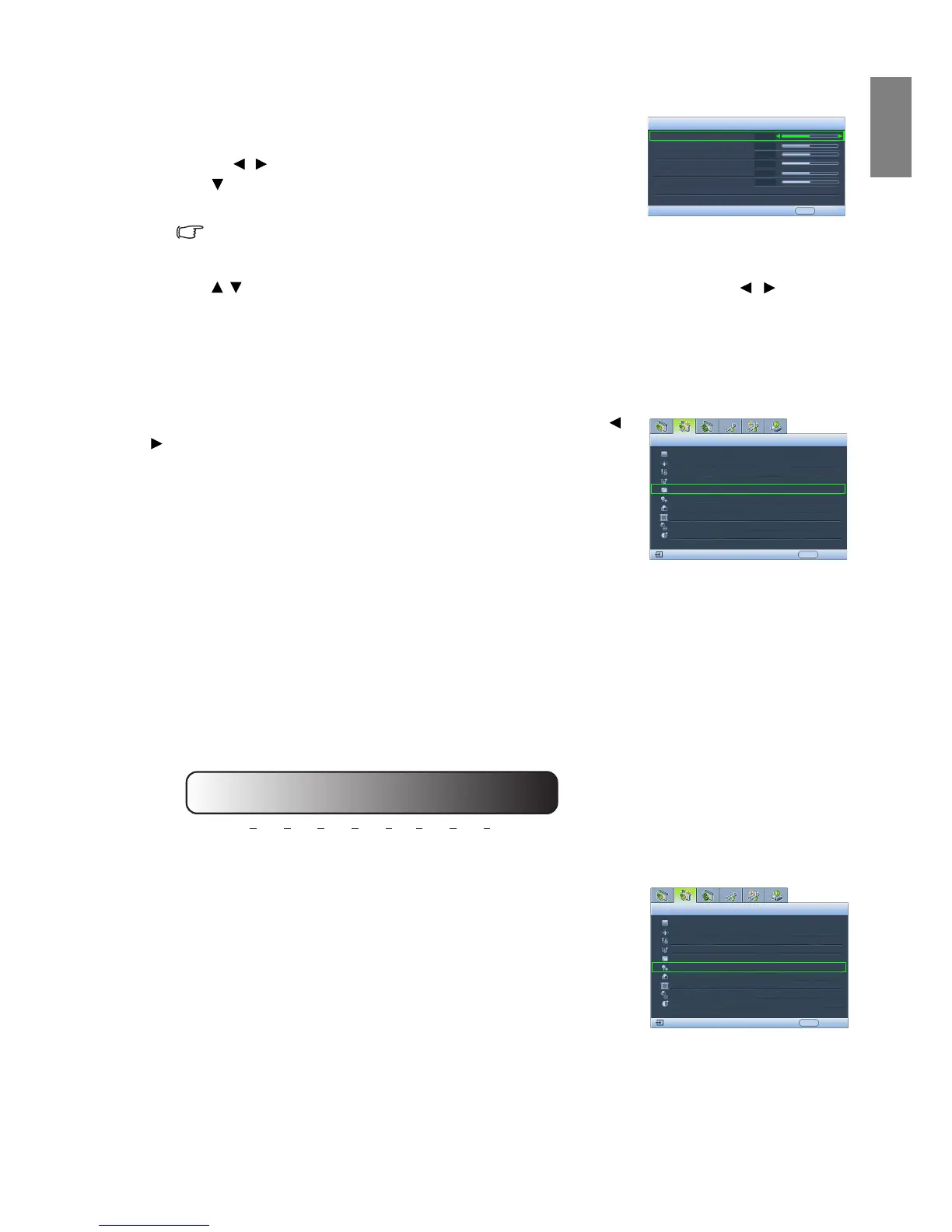 4. To save and leave the settings, press MENU on the projector or MENU/EXIT on the remote control.