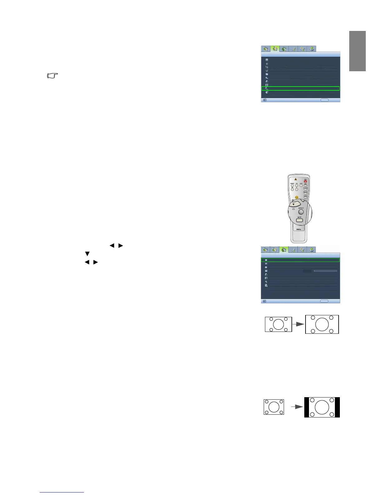 To change the projected picture ratio (no matter what aspect the source