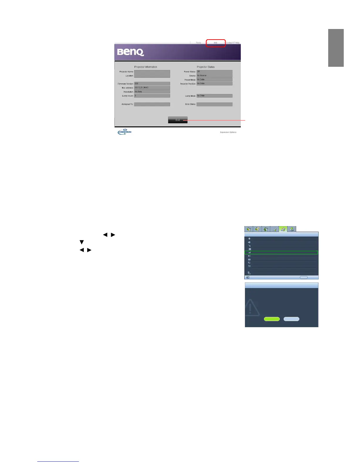 The info page displays the information and status of this projector.