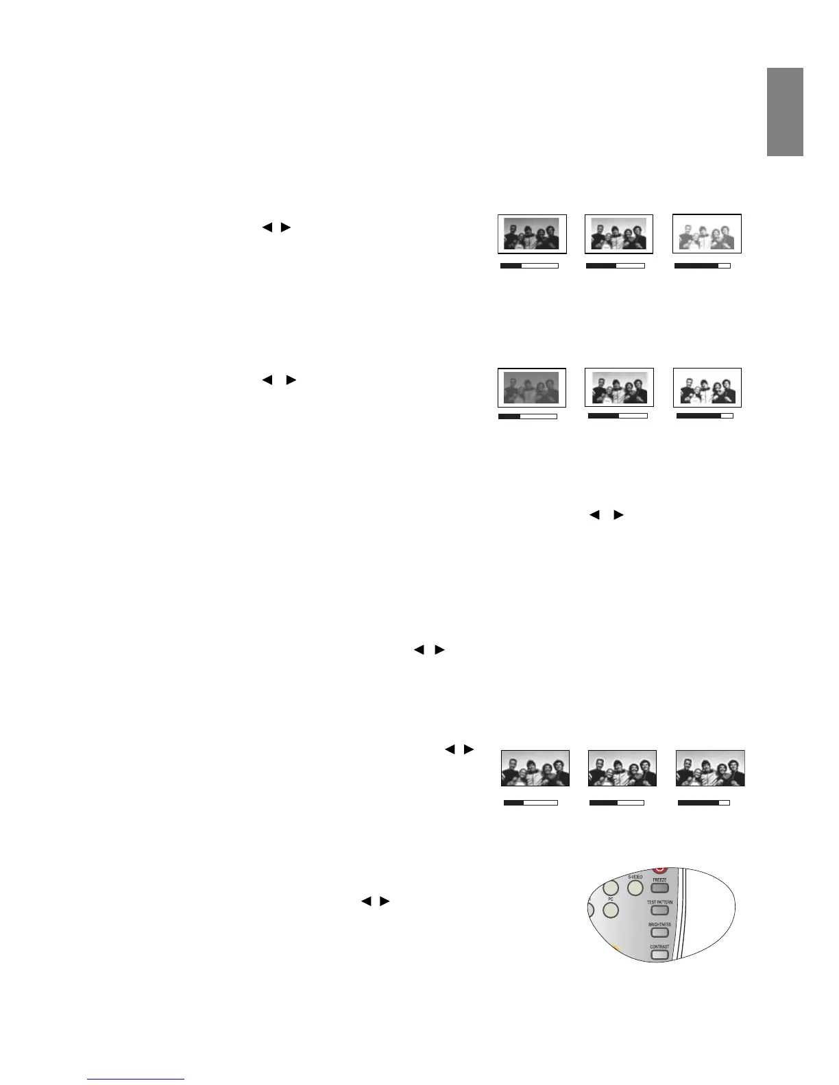 BRIGHTNESS, CONTRAST on the remote control to display the