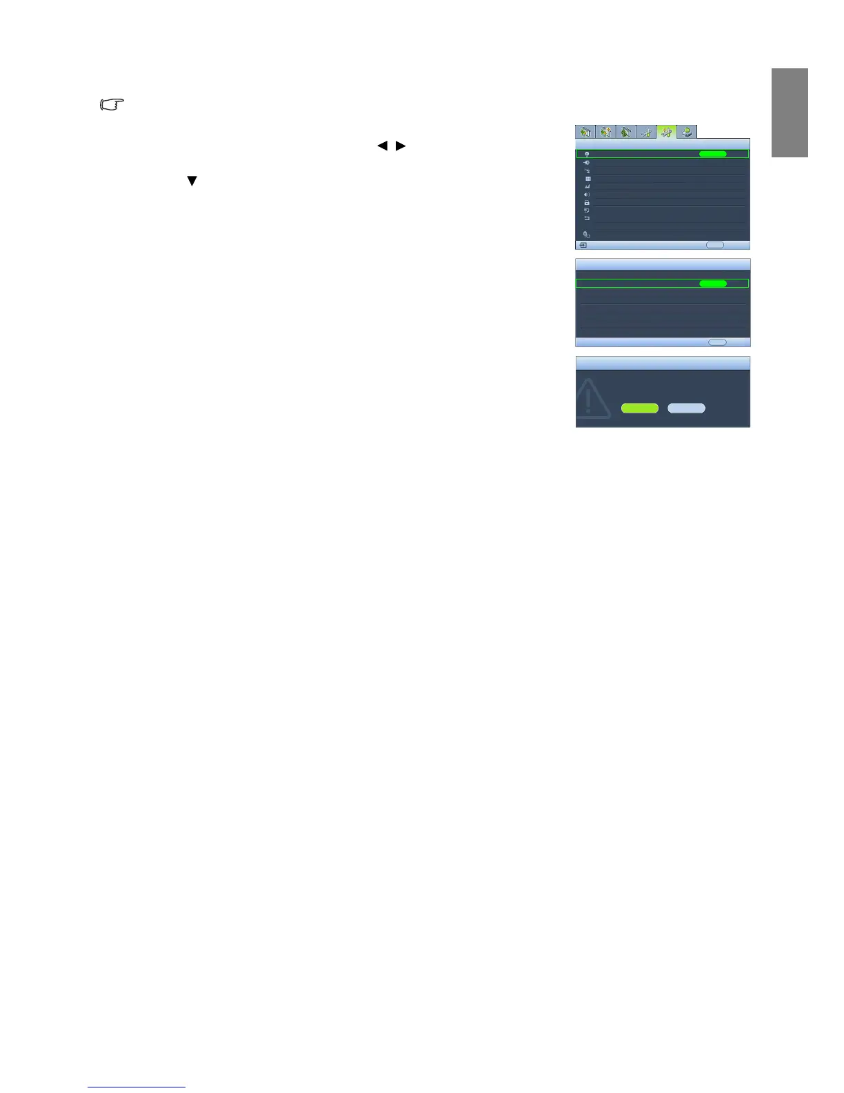 3. Highlight Reset Lamp Timer and press ENTER. A warning message is