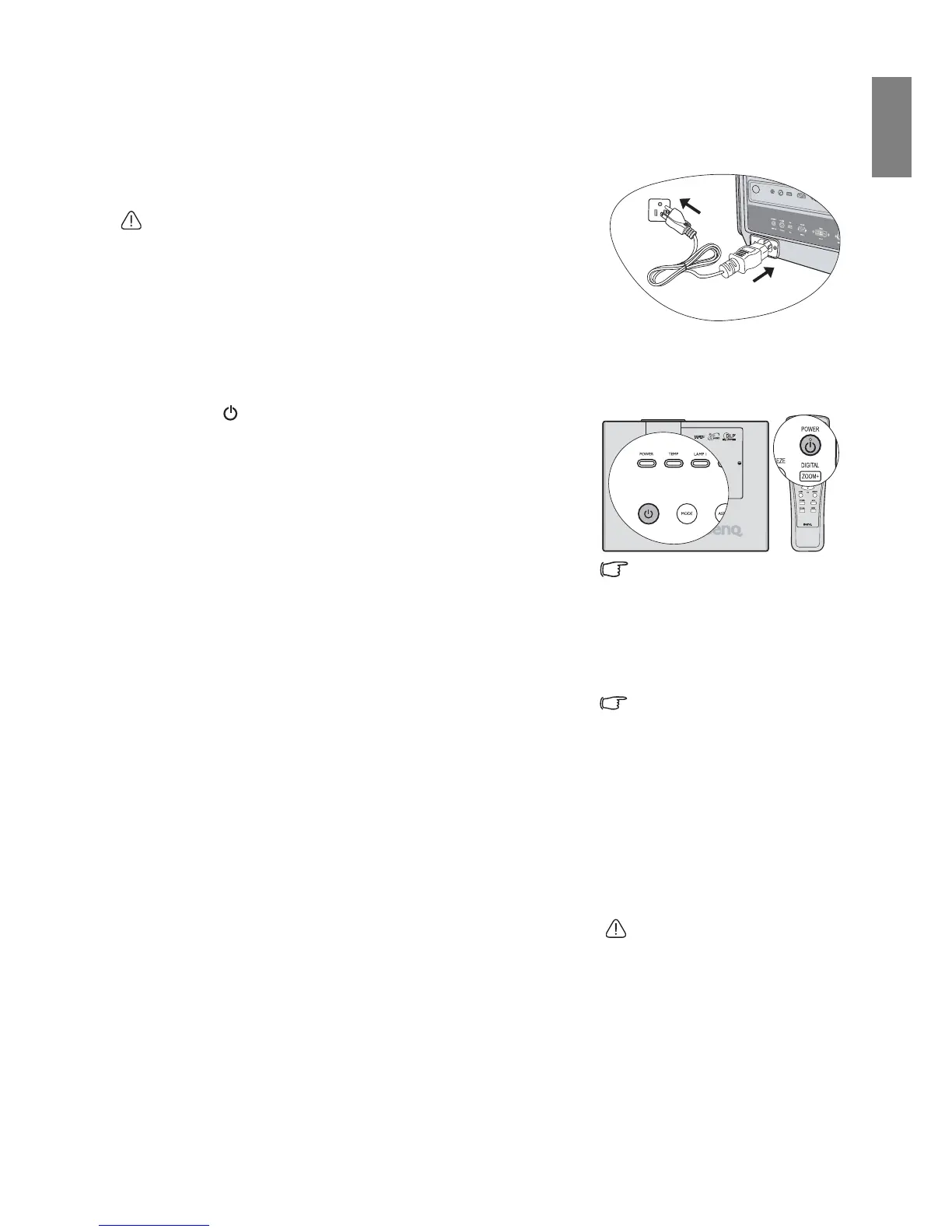 2. Press Power on the projector or remote control to start the