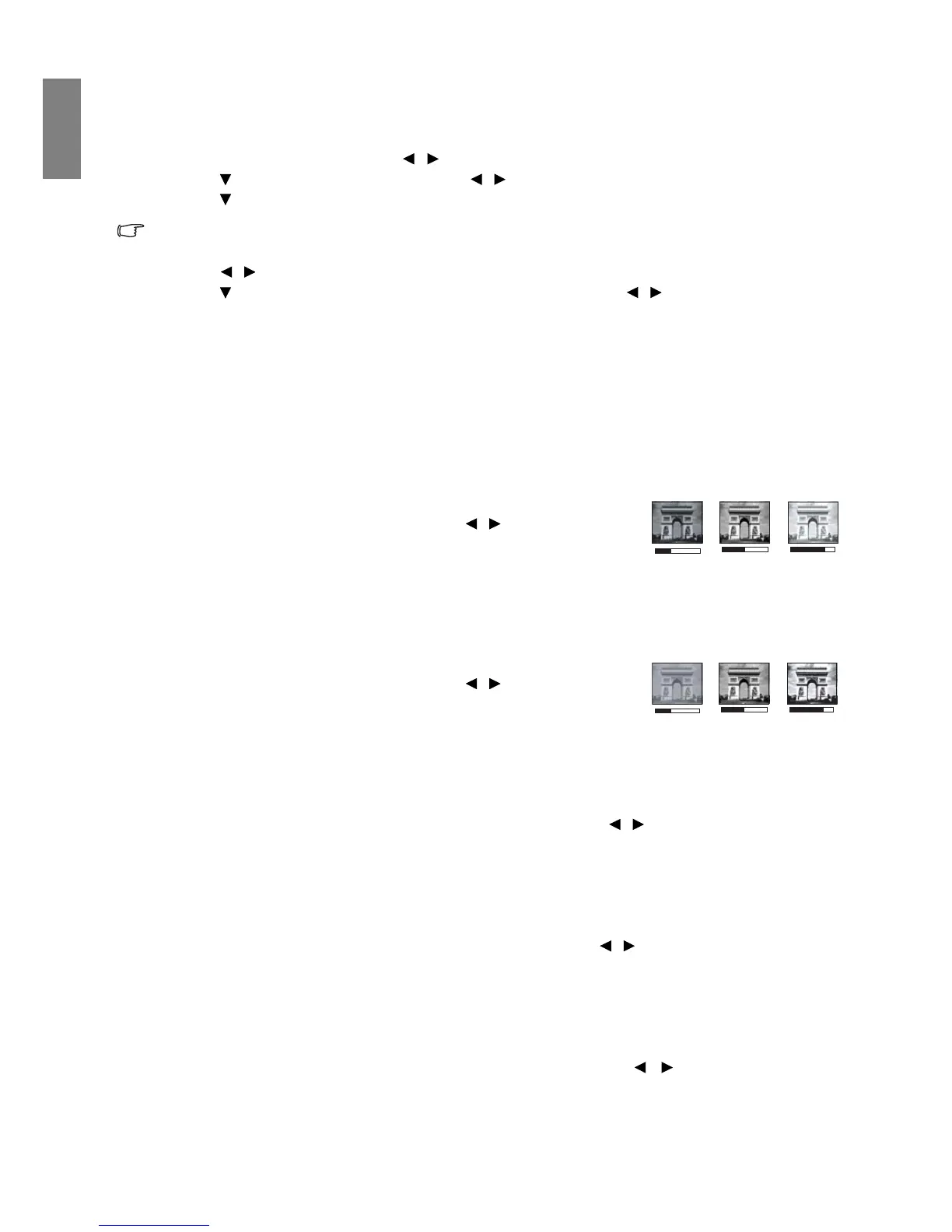 5. Press to select a menu item to be changed and adjust the value with / . See "Fine-tuning the image