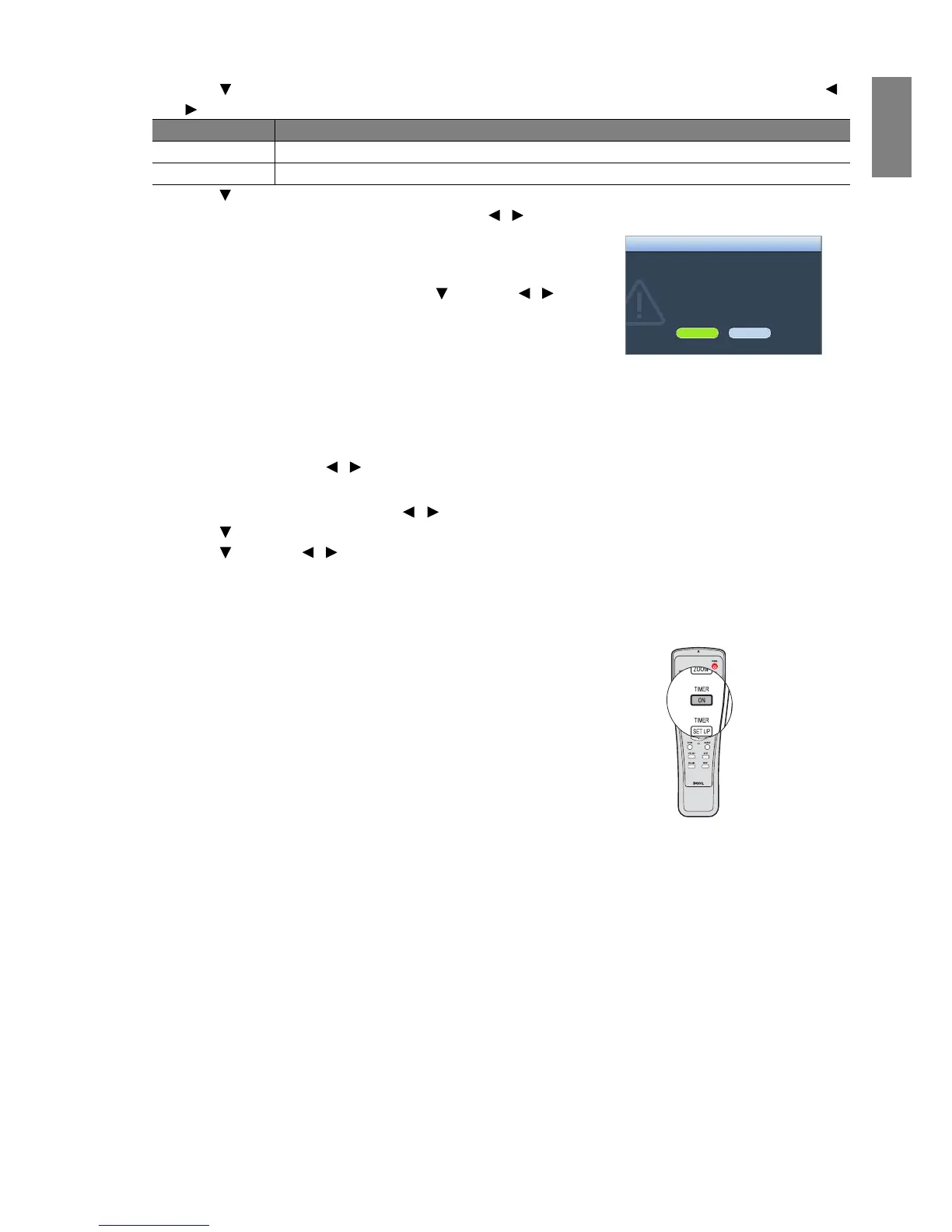 4. Highlight Ye s and press ENTER to confirm. You will see the message “Timer is Off ” displaying on the