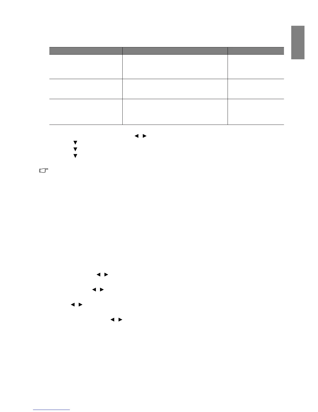 affect the projection settings, operation, or performance.