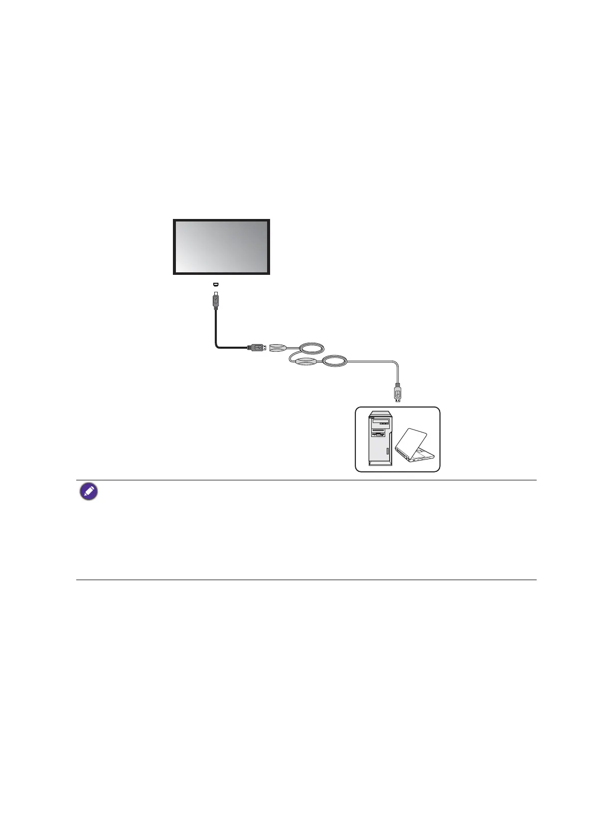 • The length of the USB cable used to connect the display to the USB extension cable should not exceed 5