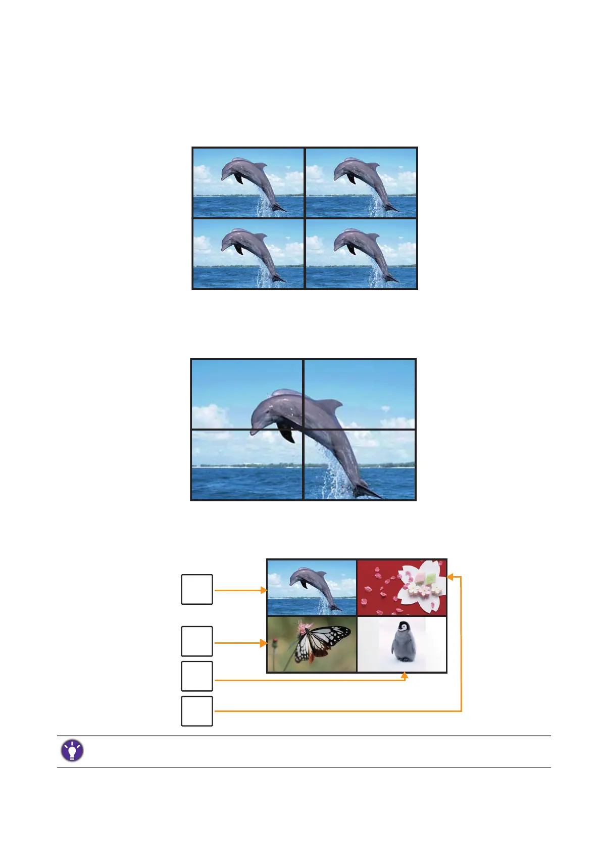 If you prefer to show different pictures on the displays of the video wall, you will need to have