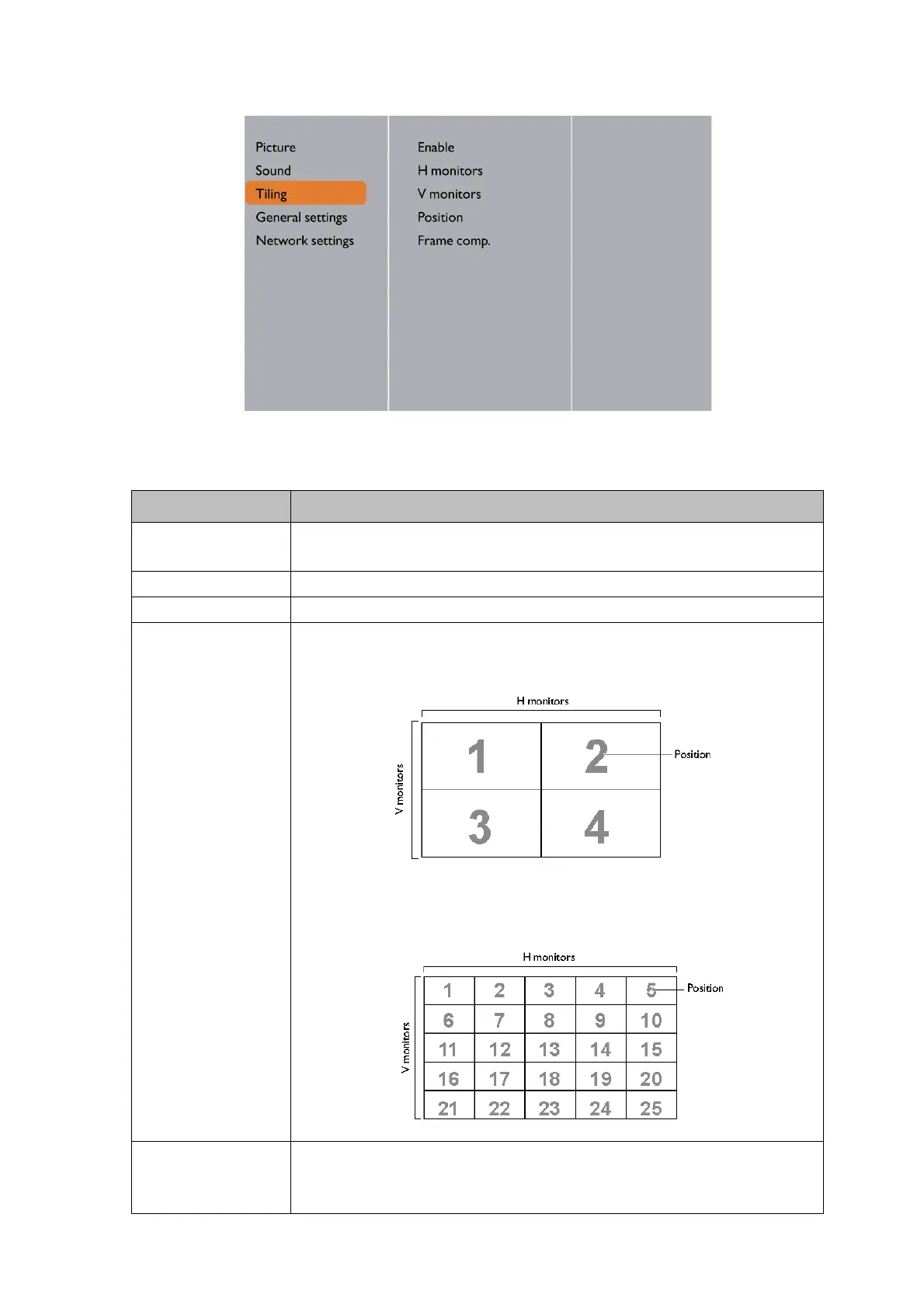 Enable Choose to On or Off the Tiling function. If On, the display will apply