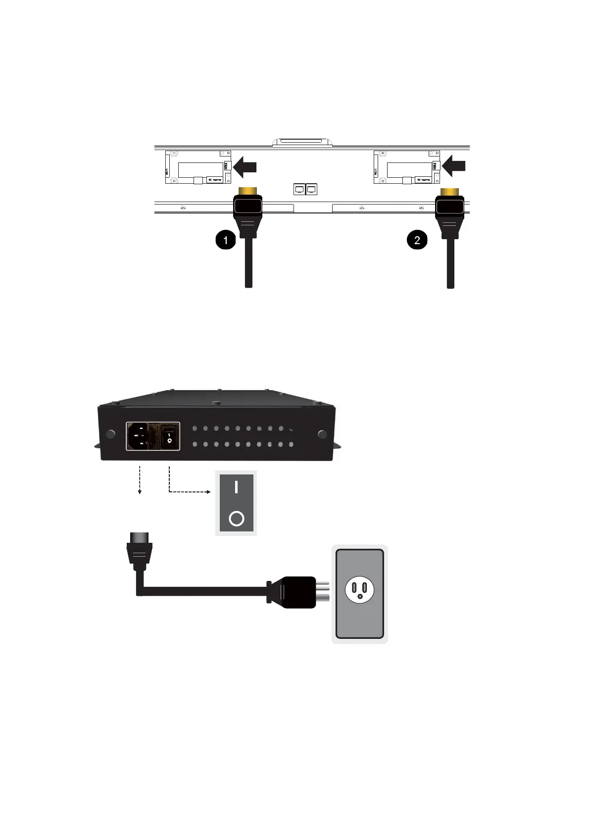 Plug two HDMI cables into the cabinet, and ensure that all cable plugs are firmly fitted into the