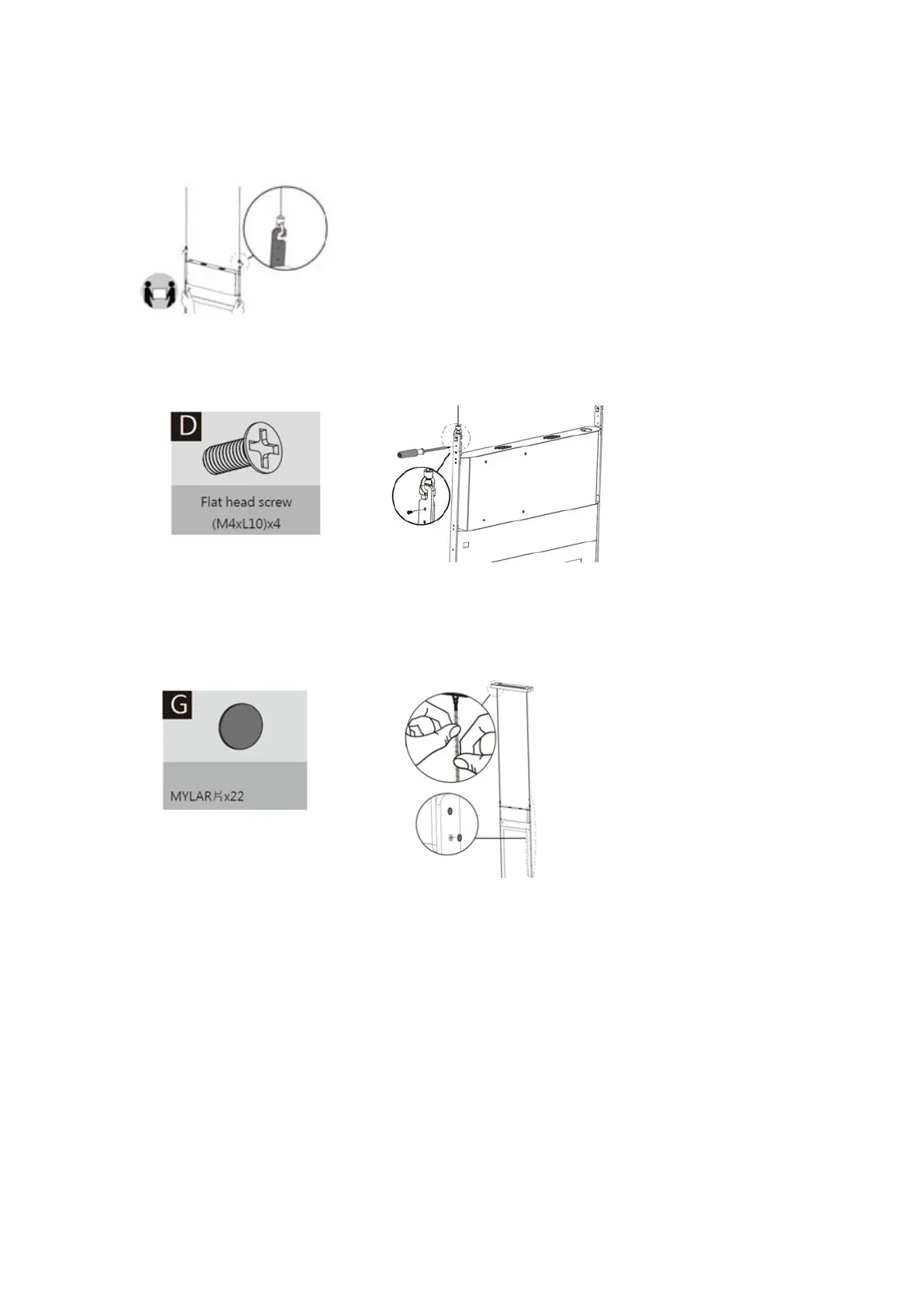 2. Secure the bracket to the panel display with the included flat head screws (M4xL10) (D) by