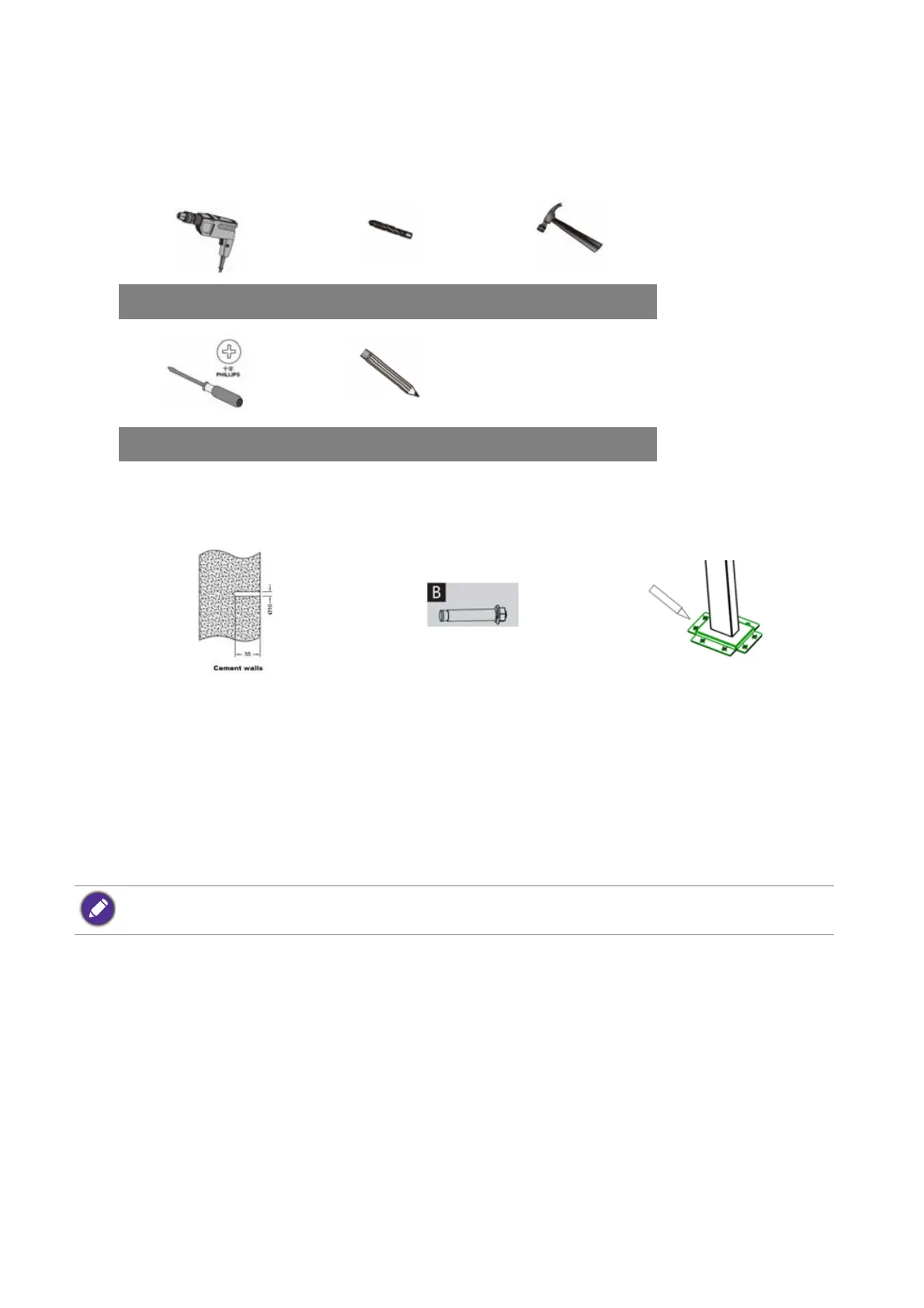 locations you have marked earlier. Please select screws according to the type of the wall.