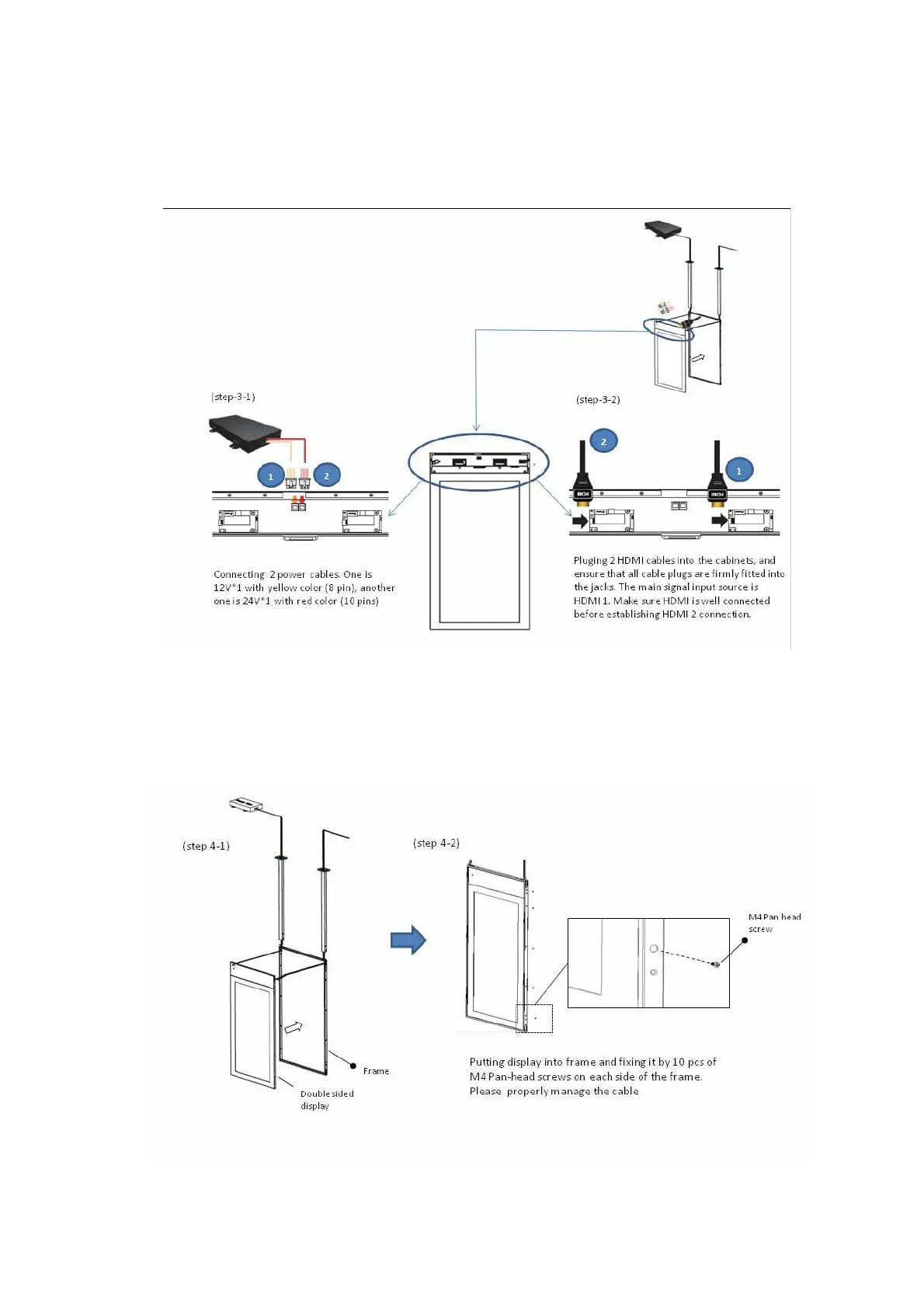 Step 3: Connecting the Power cables & HDMI cable with double sided panel