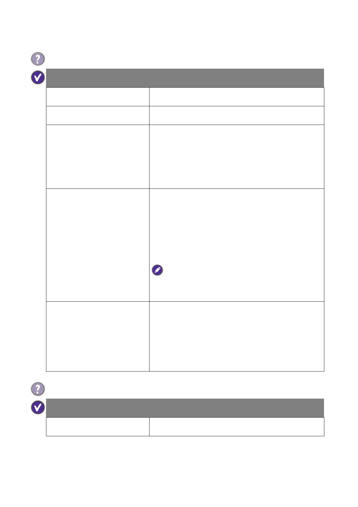 Possible causes Possible solutions