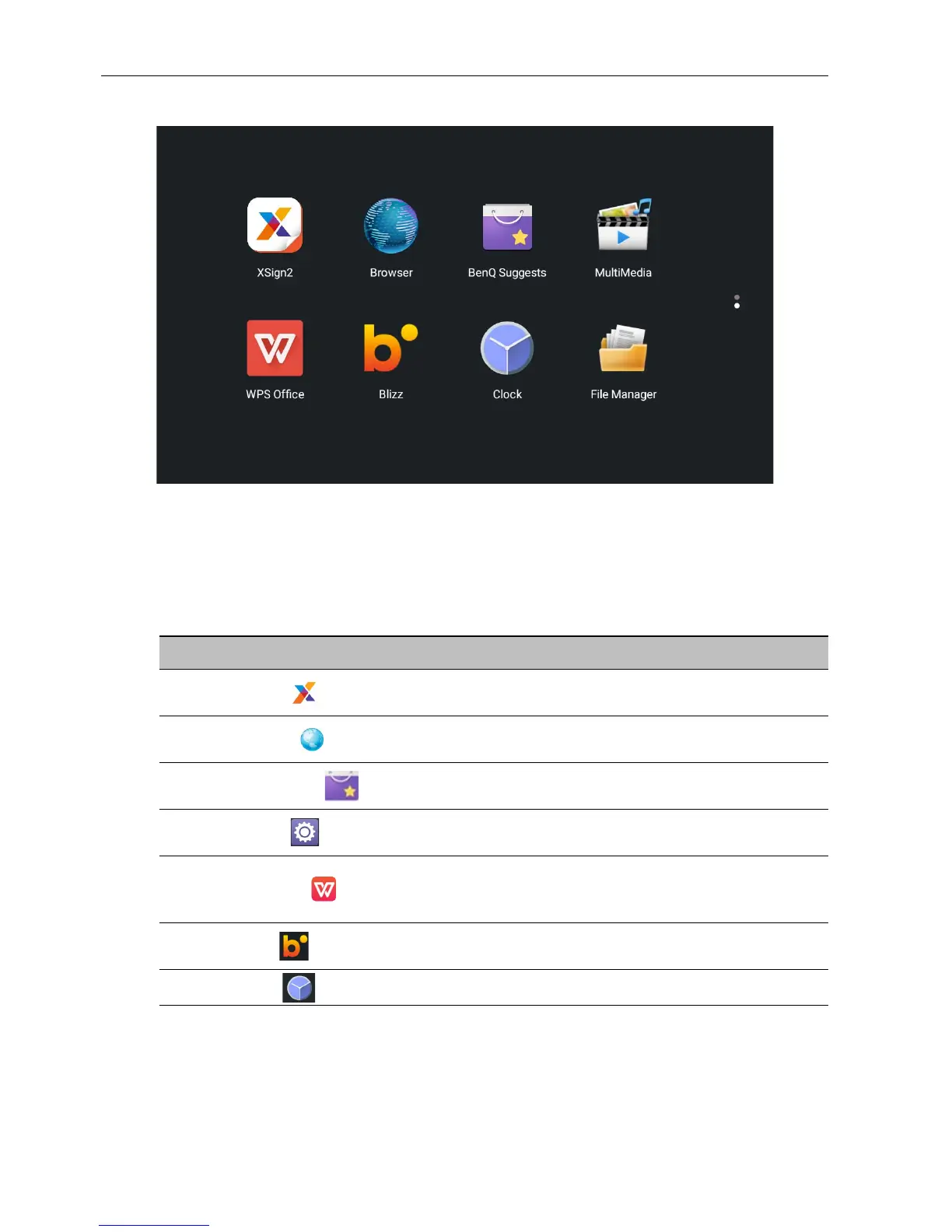 Show the Android apps suggested by BenQ. Refer to