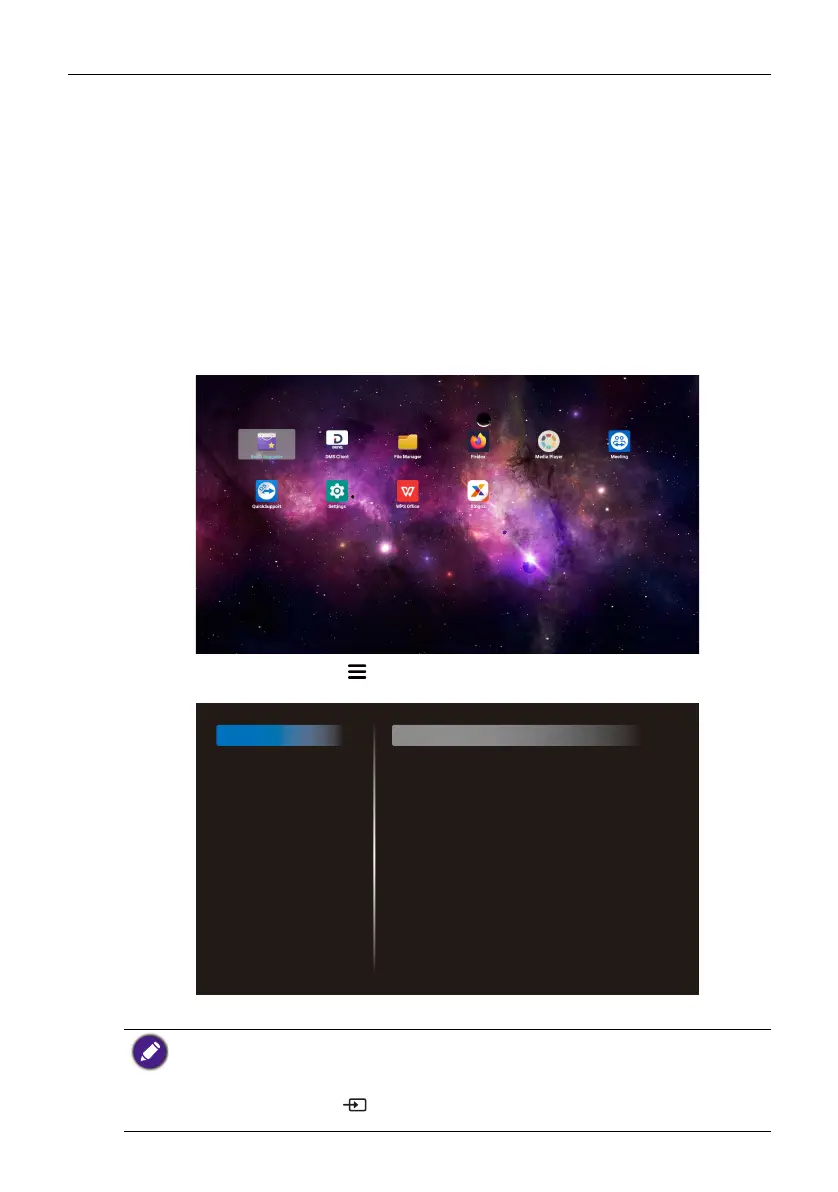 turned on. You can press on the remote control and then select Android to open the