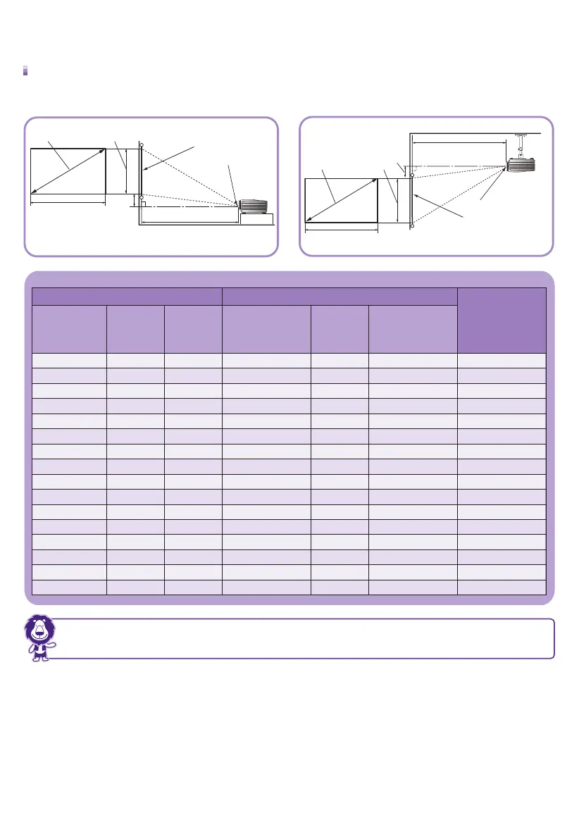 Screen dimensions Projection distance <D> [cm]