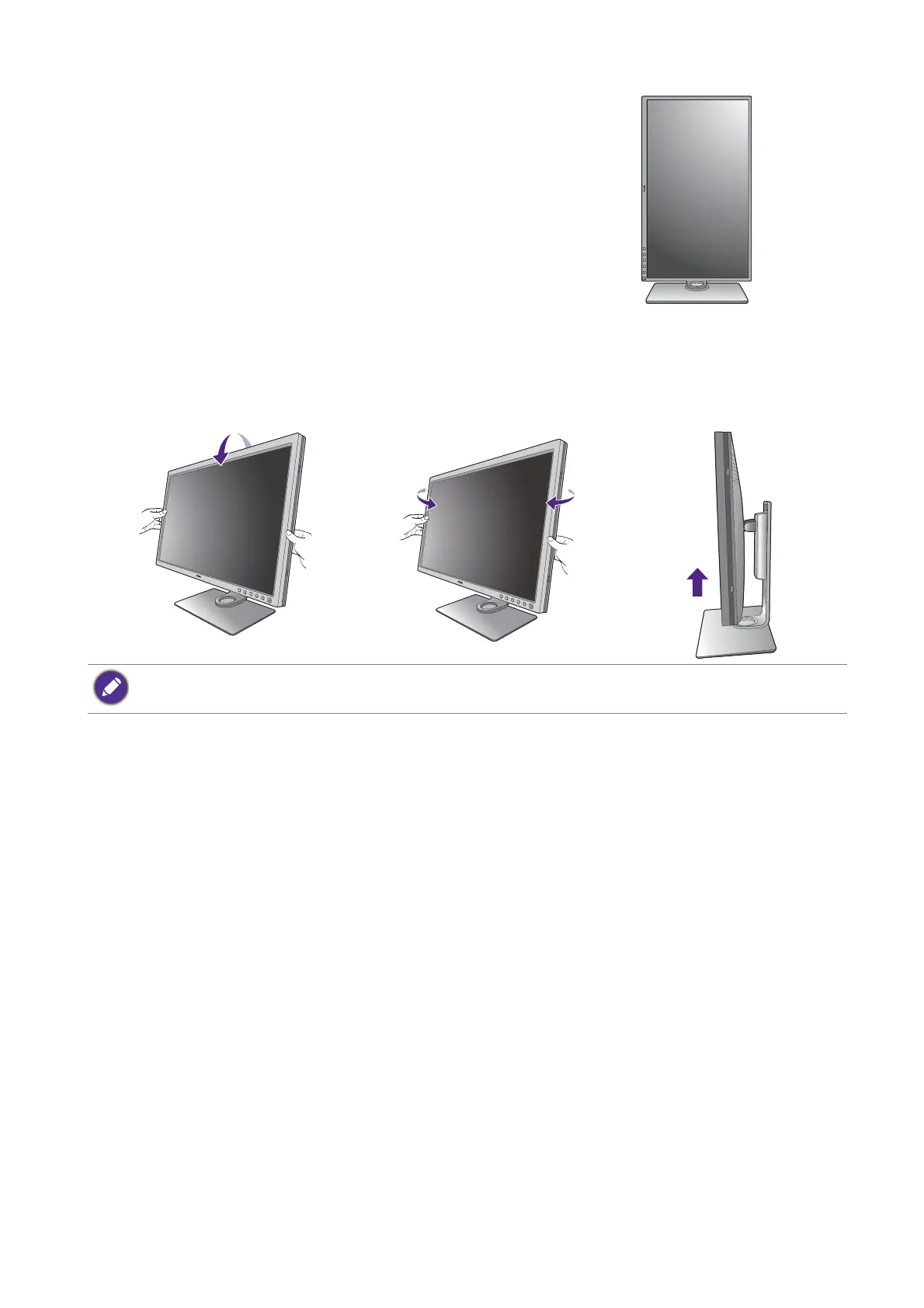 You may position the screen to the desired angle with monitor tilt, swivel, and height