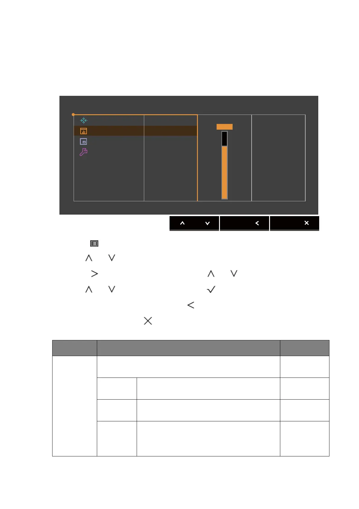 4. Use or to make adjustments, or use to make selection.