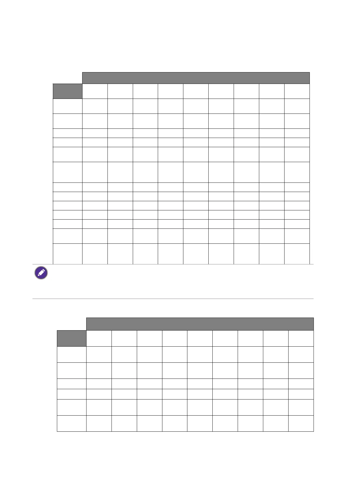 vary. Color modes and the available display options are as follows: