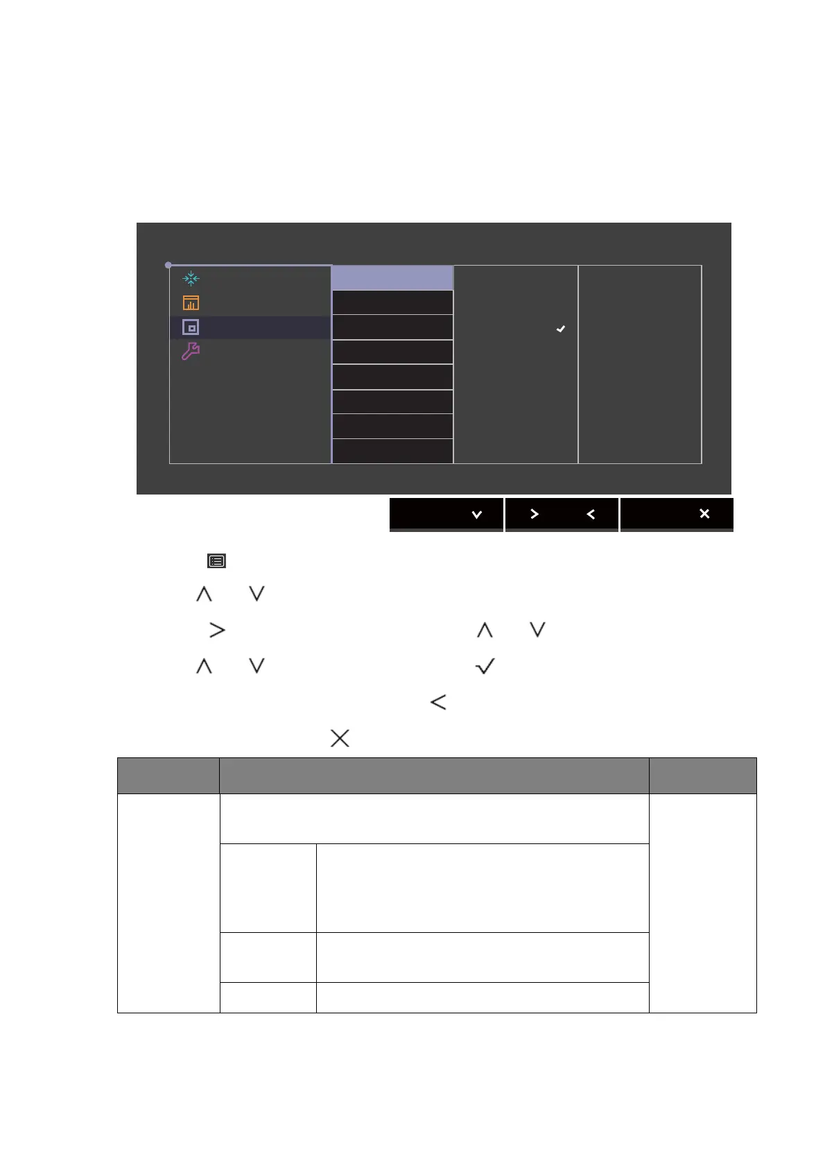 disabled and the corresponding OSD icons will disappear. For models without certain