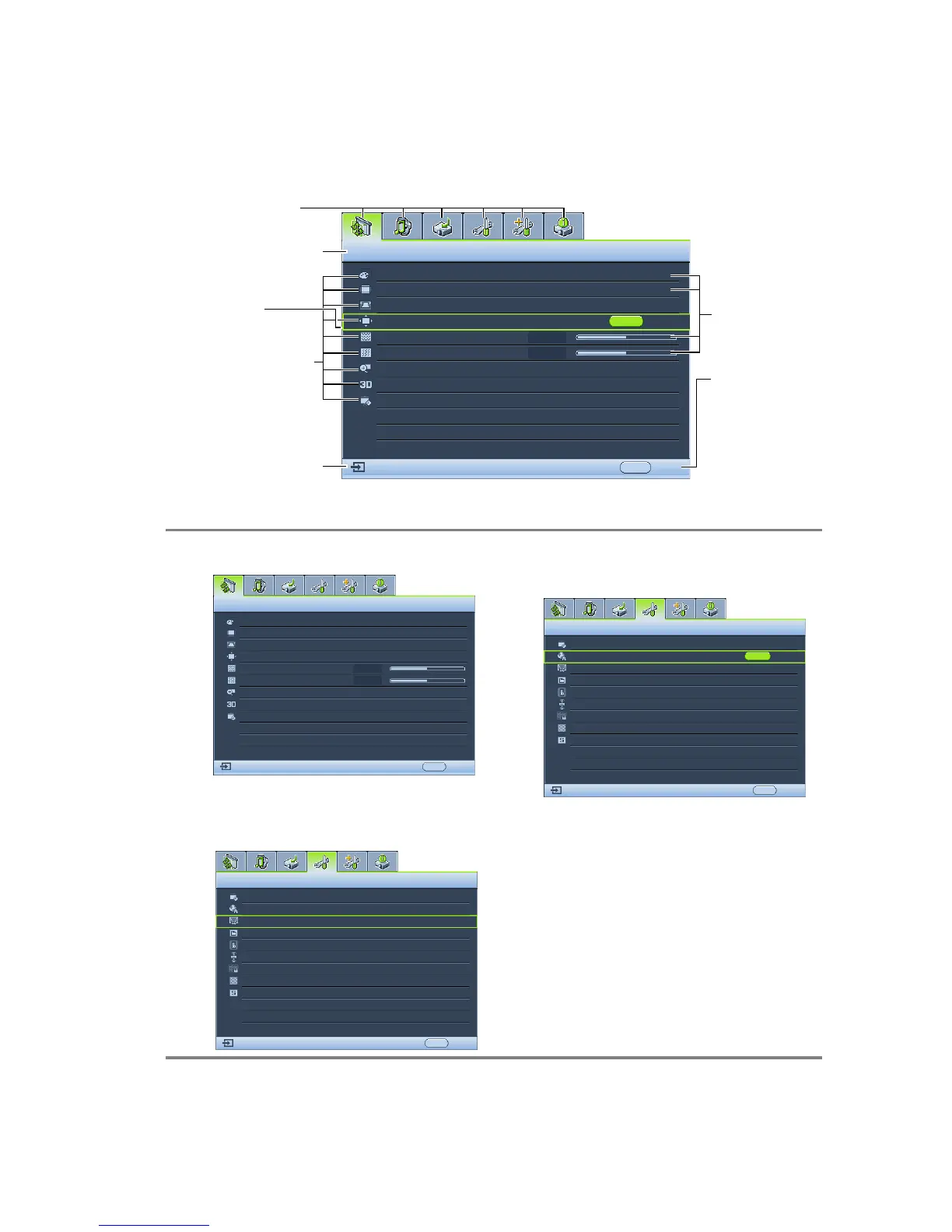 The projector is equipped with On-Screen Display (OSD) menus for making various