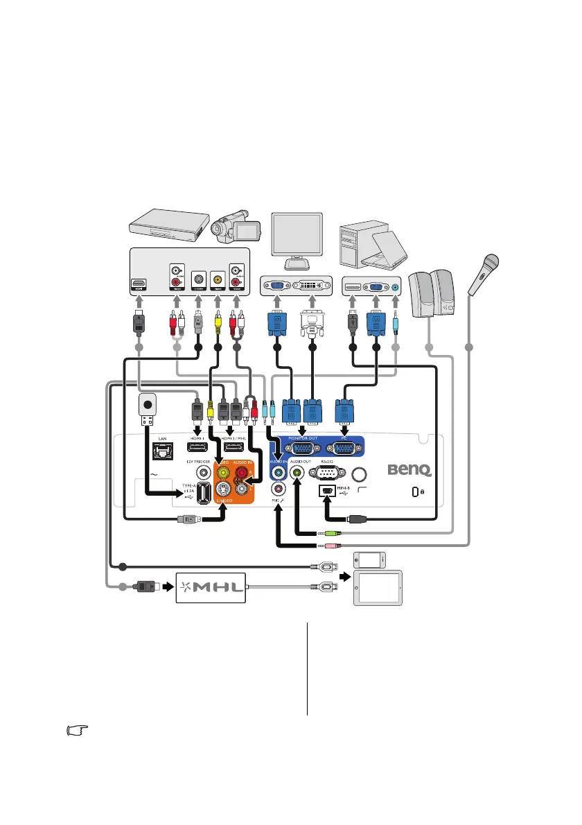 In the connections shown below, some cables may not be included with the projector (see