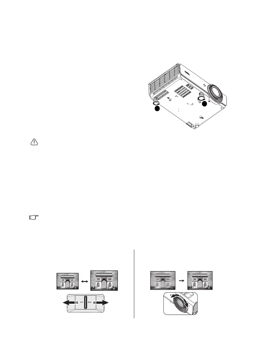 • Do not look into the lens while the lamp is on. The strong light from the lamp may cause