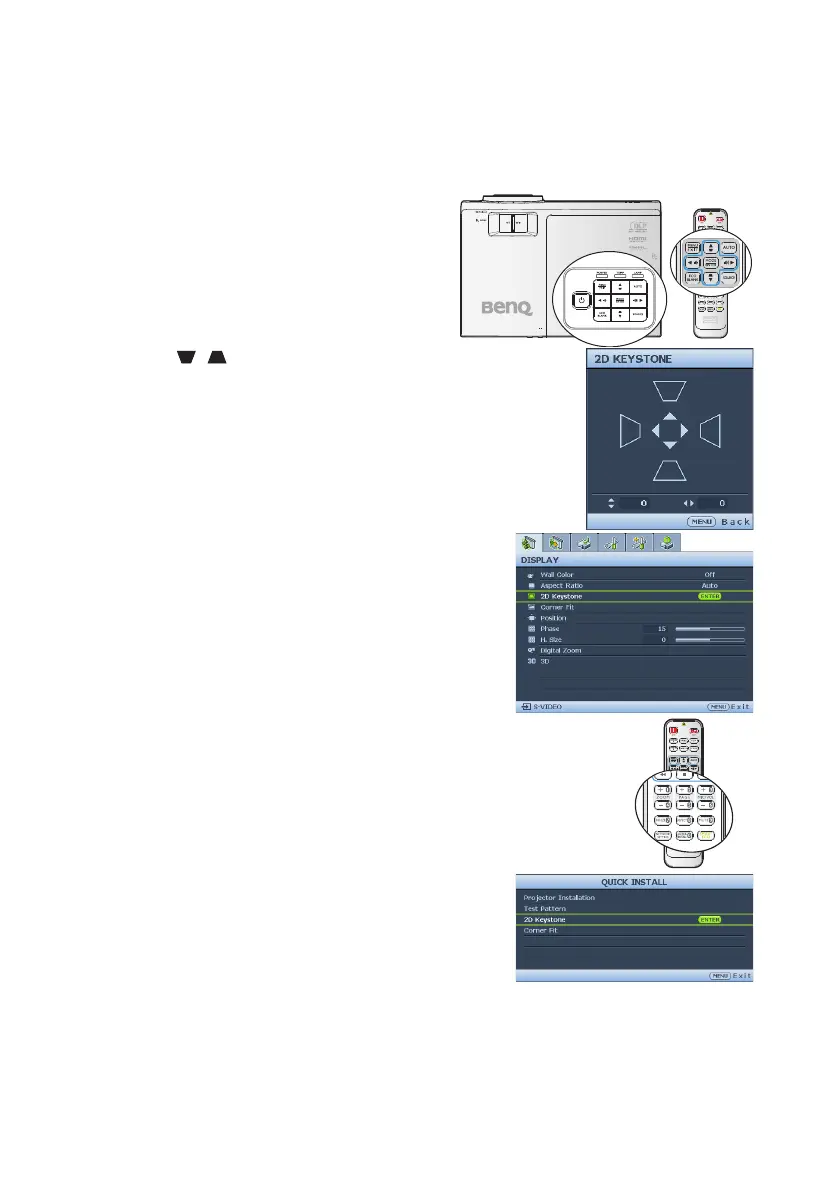 3. Press ▲, ▼, ◄, ► to adjust the keystone