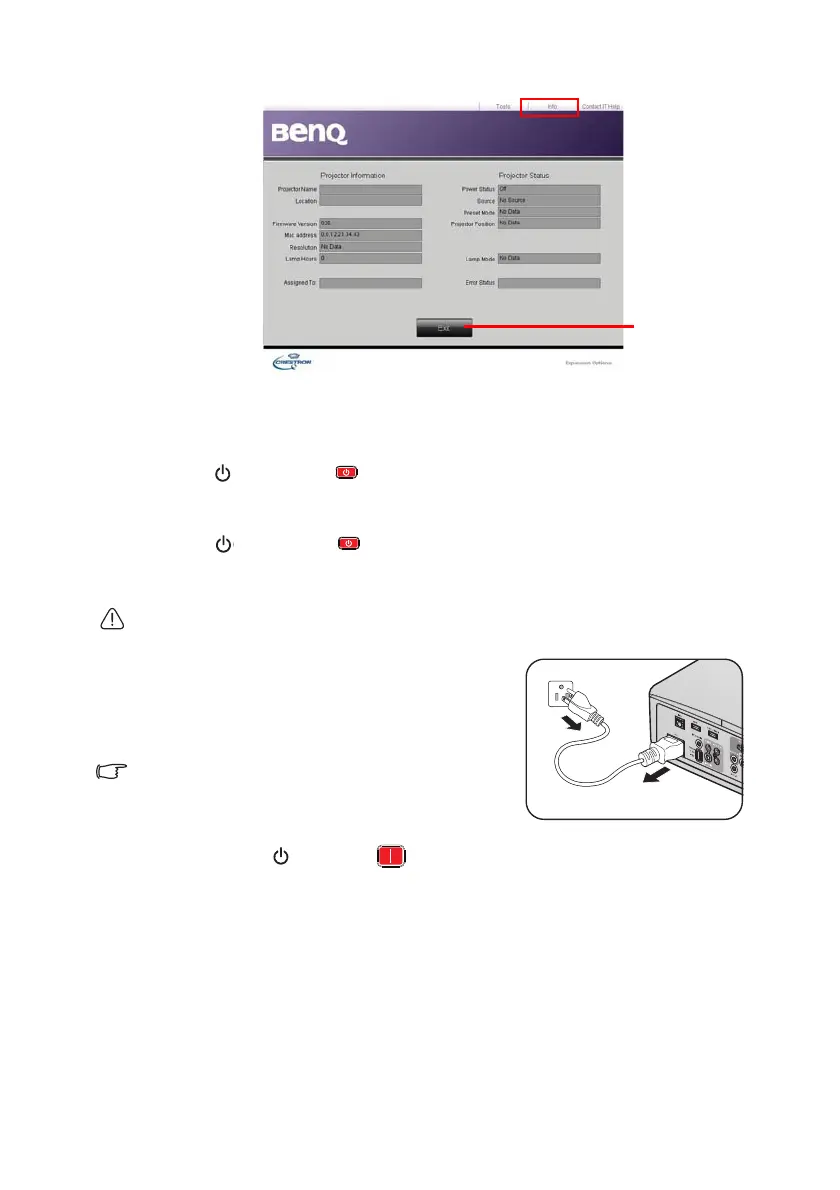 flashes orange, the projection lamp shuts down, and the fans will continue to run for