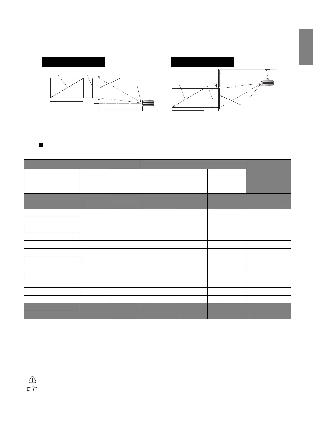 160 to 190-inch size screens. The projector can be adjusted (using the zoom control) to display on these