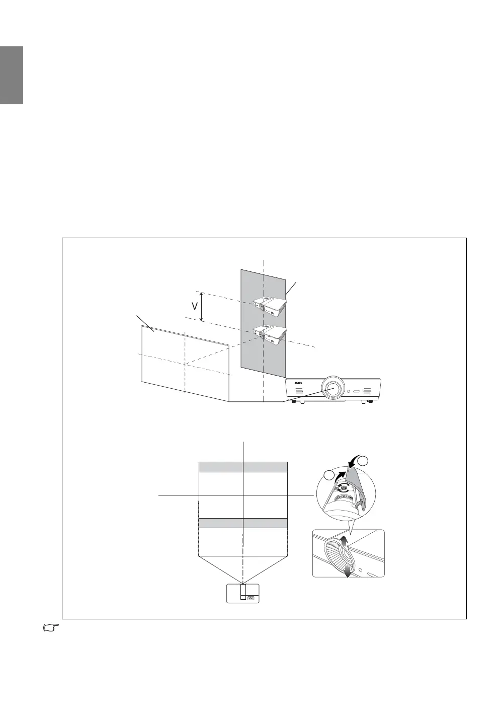 offset from the projected image’s vertical or horizontal center. You can shift the projection lens in vertical