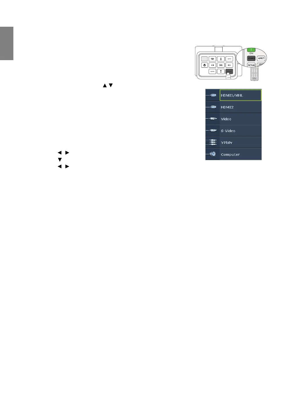 Press SOURCE and then press / until your desired signal is selected