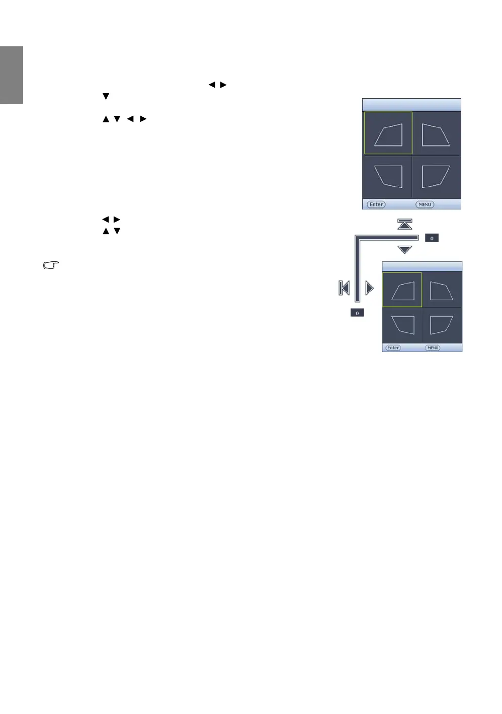 3. Press / / / to select one corner and press MODE/ENTER.