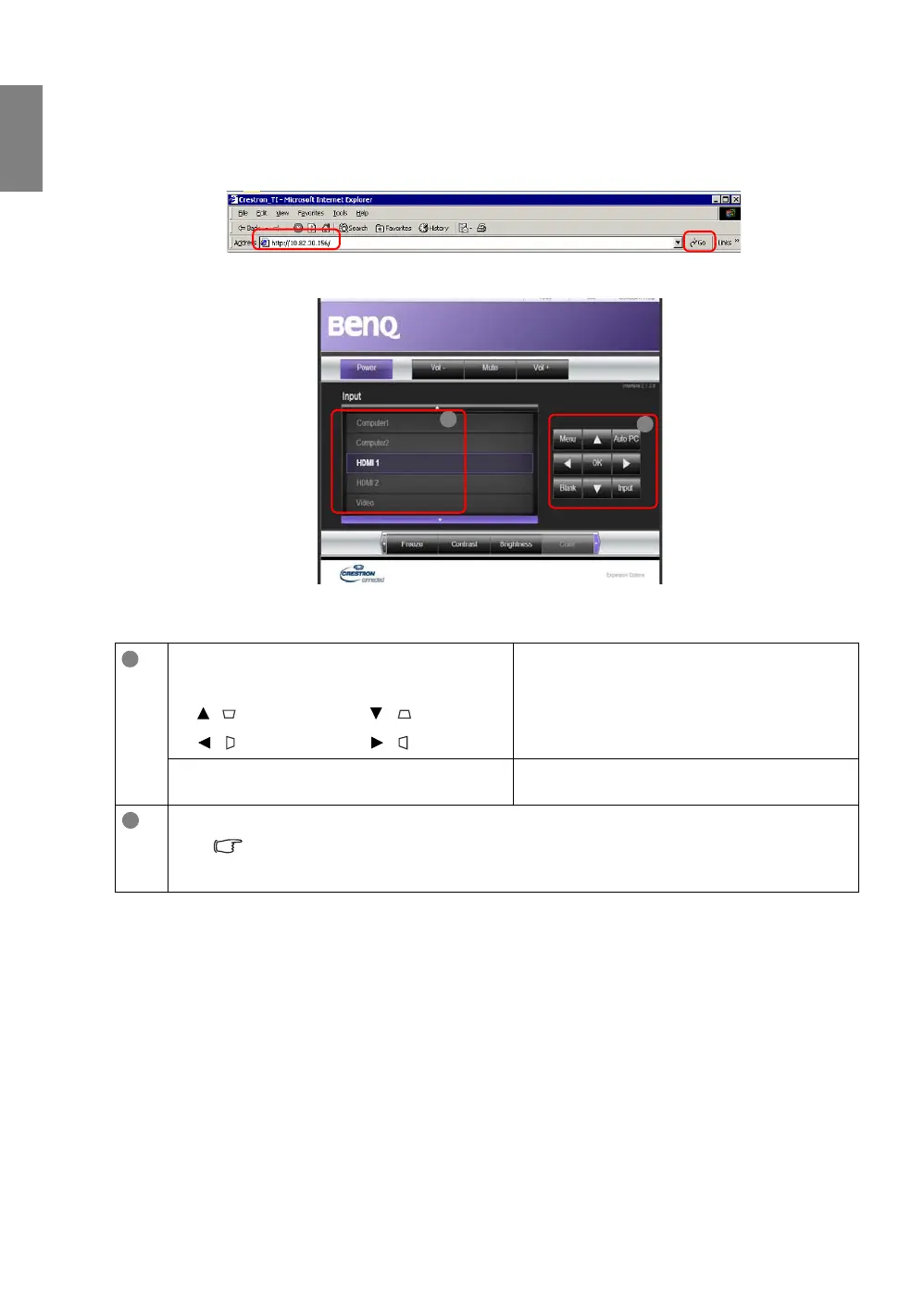 1. Enter the address of the projector in the address bar of your browser and click Go.
