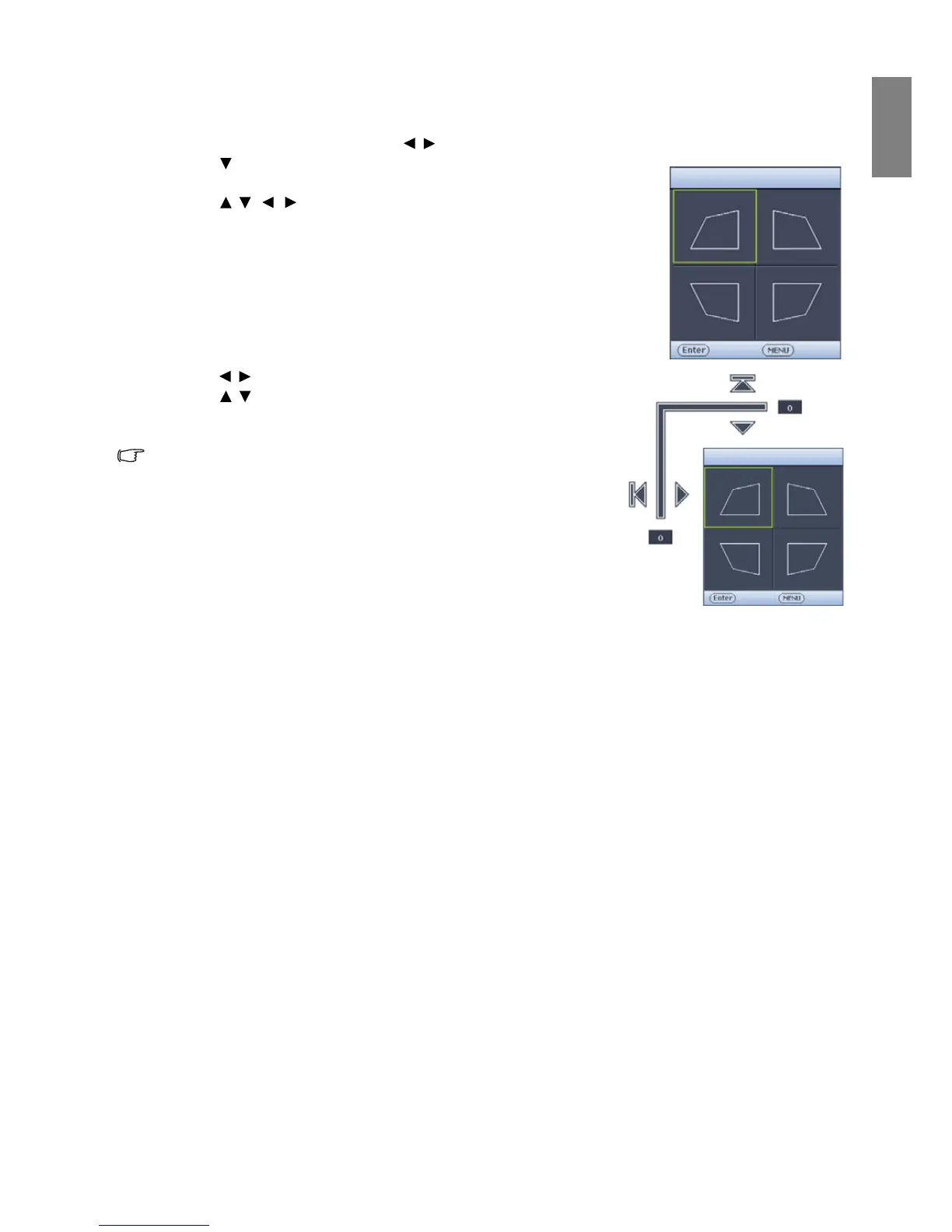 3. Press / / / to select one corner and press MODE/ENTER.