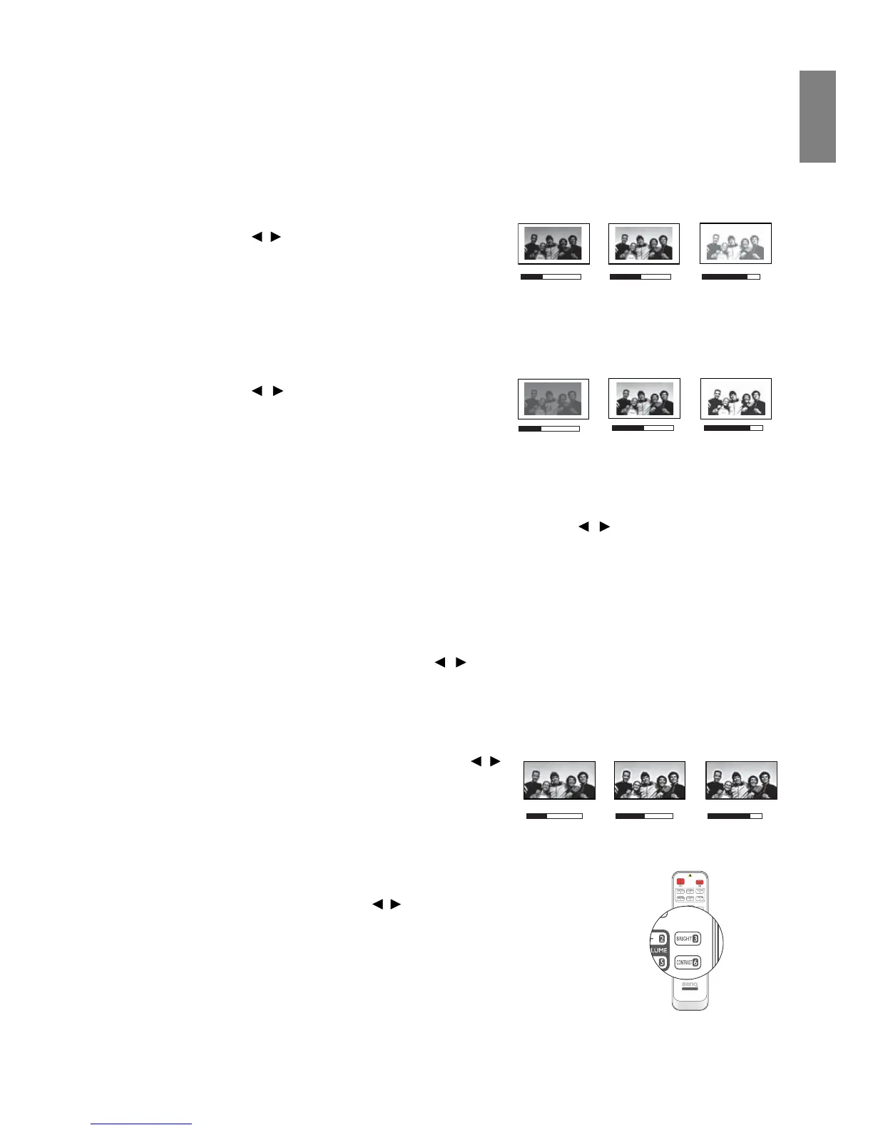BRIGHTNESS, CONTRAST on the remote control to display the